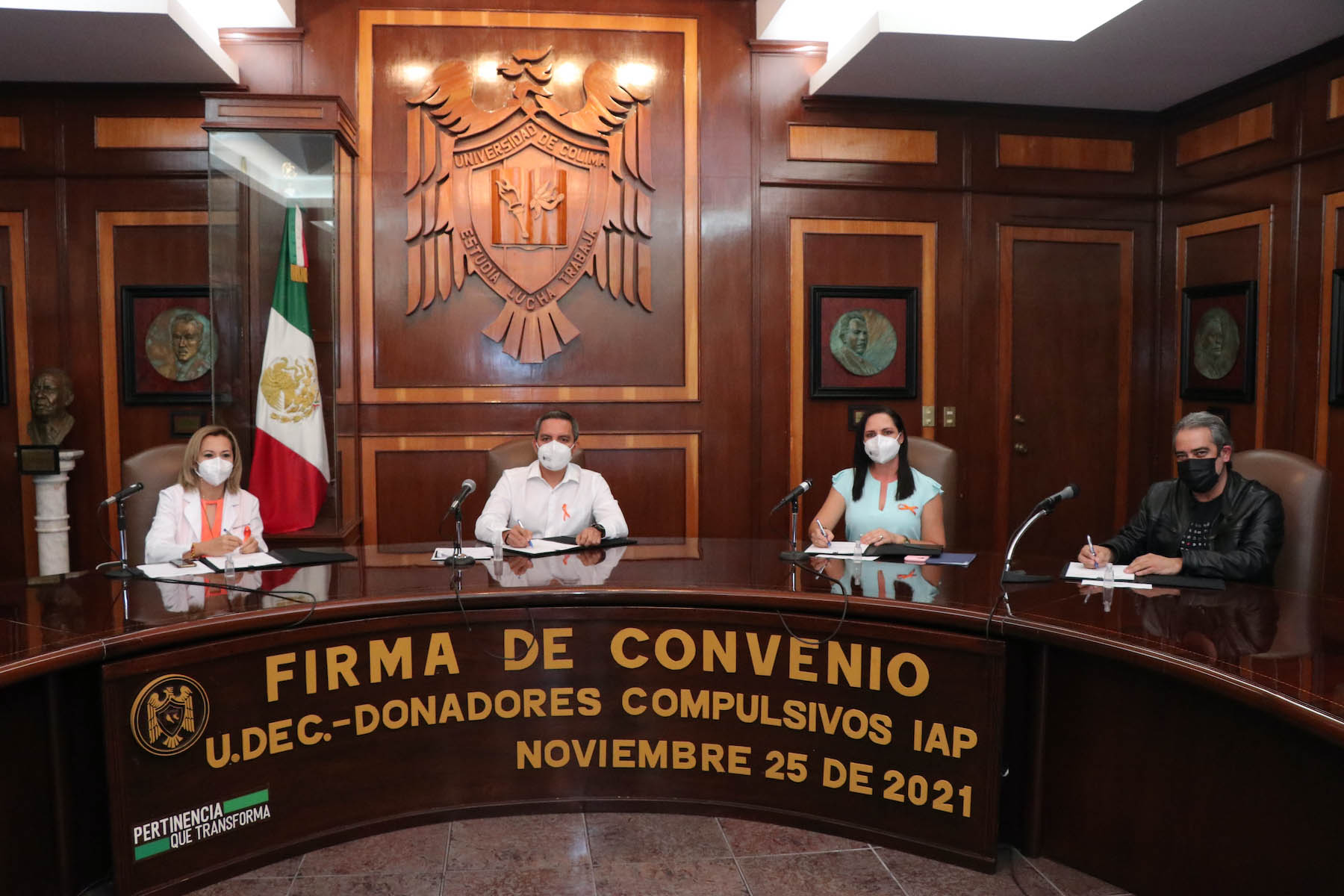 Donadores Compulsivos y la Universidad de Colima, a través del Voluntariado Universitario, firmaron este jueves en la sala de juntas de rectoría, un convenio de colaboración con vigencia de dos años, para fomentar la cultura de la donación altruista de sangre en nuestro estado, y captar la mayor cantidad de unidades mediante la donación voluntaria.
