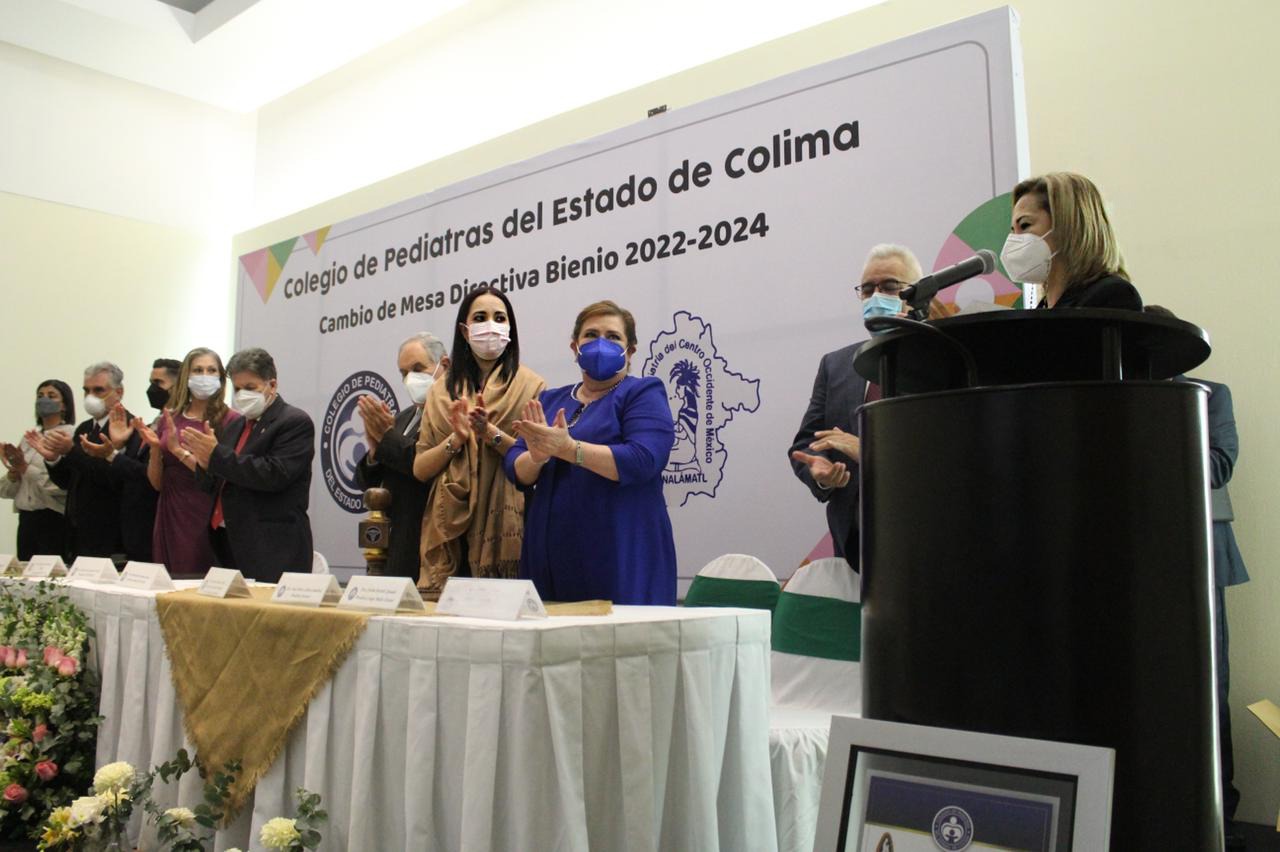 La secretaria de Salud, Martha Janeth Espinosa Mejía presidió la toma de protesta de la nueva mesa directiva del Colegio de Pediatras del Estado, el cual será dirigido por Dulce Belén Cabrera Sandoval. En el acto donde estuvo el presidente de la Confederación Nacional de Pediatría de México, Jesús Gerardo Guajardo, destacó el alto nivel de capacitación médica continua, la apertura del gobierno estatal a nuevos proyectos del gremio y agradecimiento al presidente saliente Germán Agustín Rico Solís.