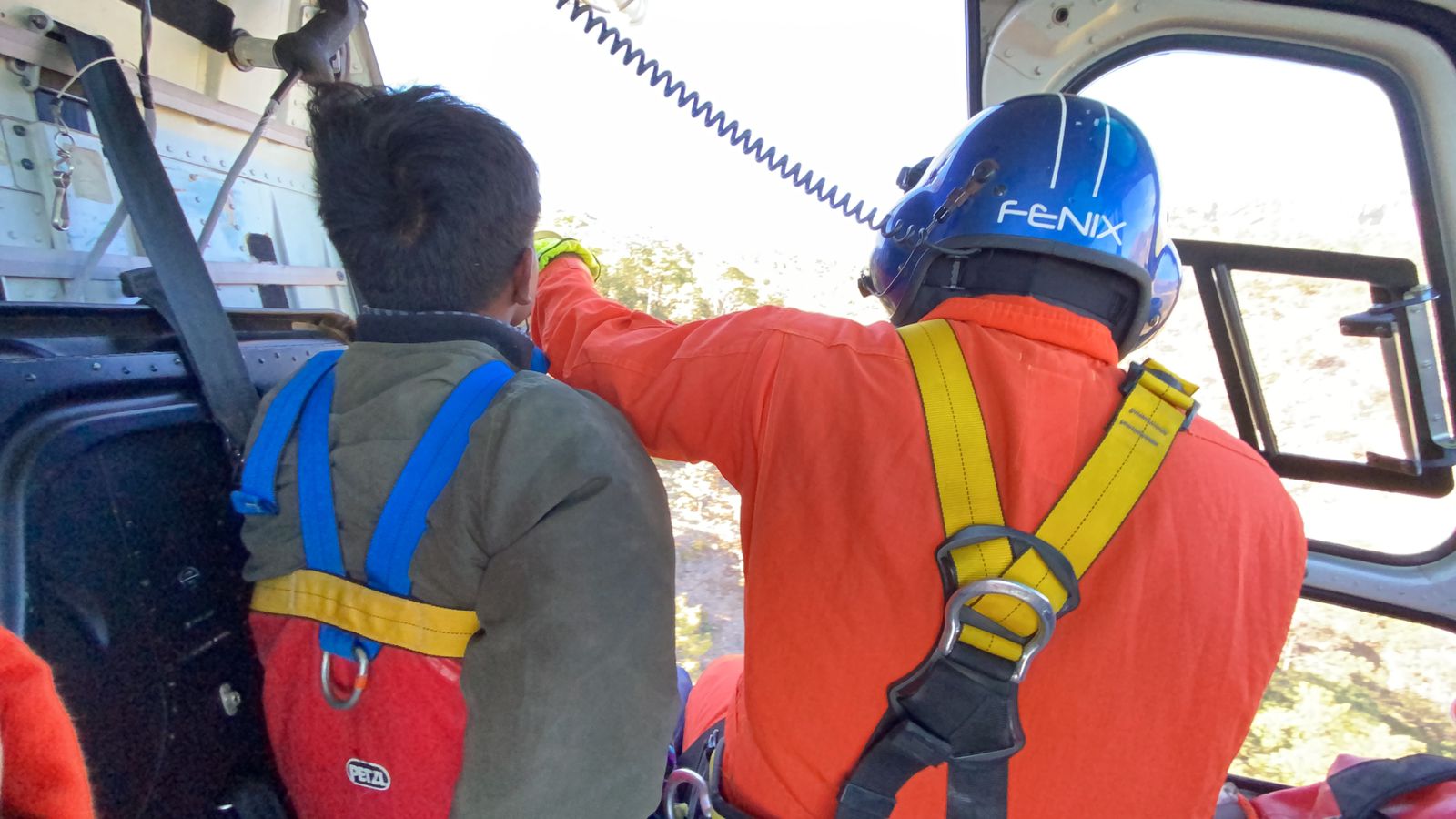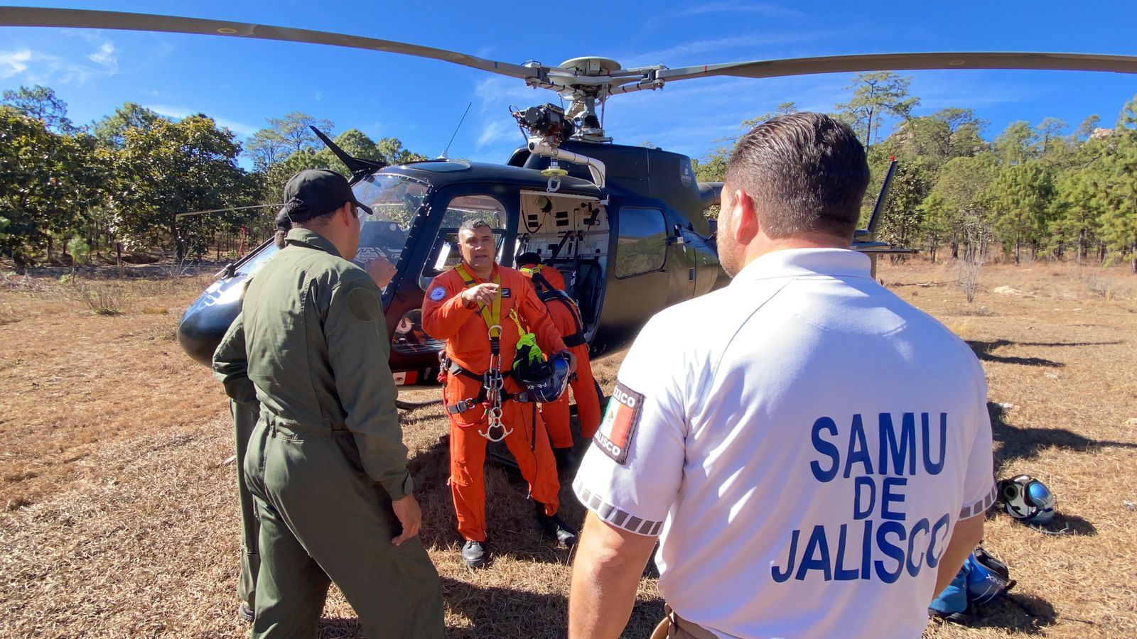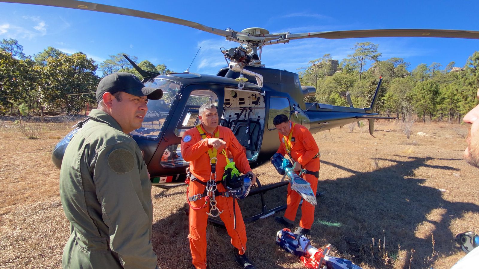 Siendo las 17:47 horas, se dan por terminados los trabajos de rescate, en coordinación con dos aeronaves de la Secretaria de Seguridad Pública del Estado, viajando en una de ellas dos médicos de SAMU y en la otra el personal de rescate del grupo aéreo “Fénix” quien descendieron para realizar maniobras para poder sacar a las personas.