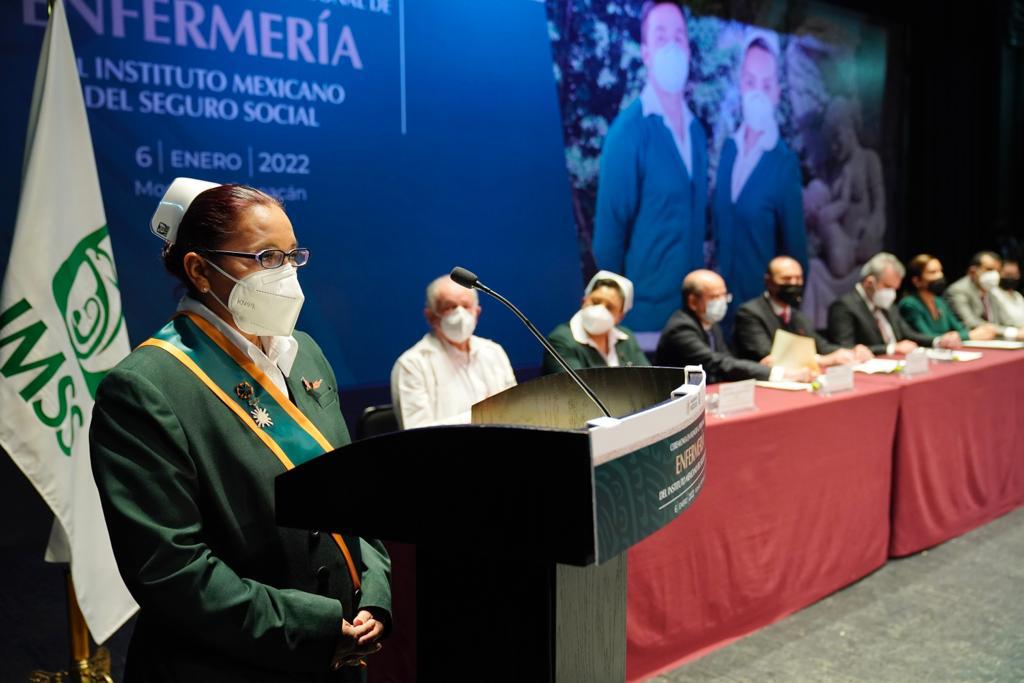 Subrayó que actualmente el trabajo del personal de Enfermería tiene una nueva dimensión y se revalorizó, sobre todo en los días y las horas de la pandemia y en el proceso de vacunación. “Para nosotros ha sido lo más parecido a una guerra y ustedes, hombres y mujeres, han sido los más fieles y férreos soldados que han defendido la salud de los derechohabientes”.