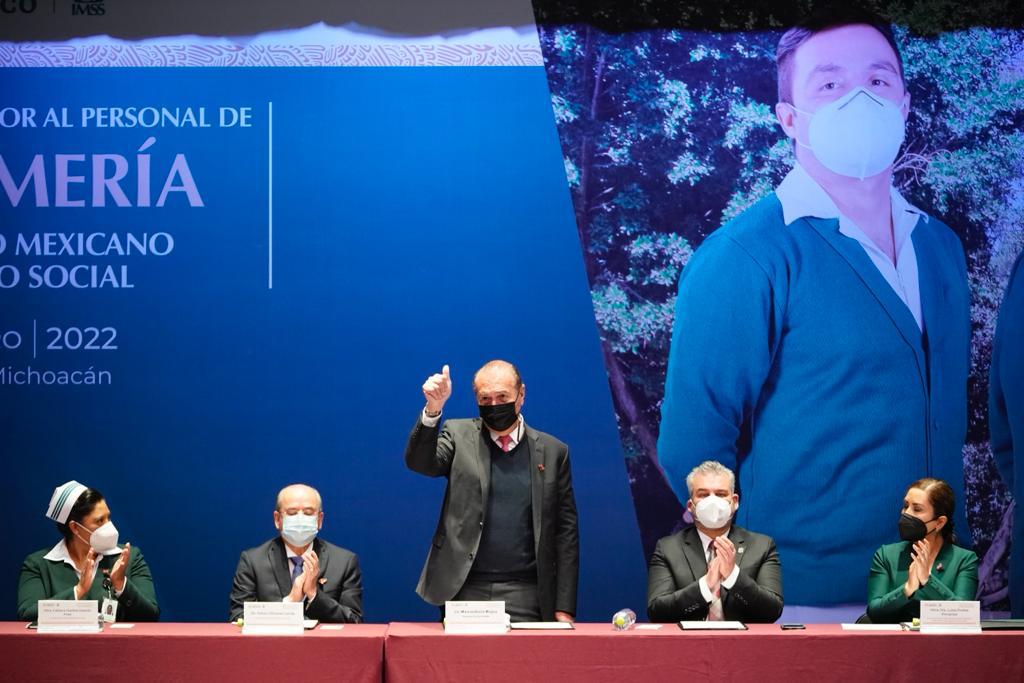 Ramírez Bedolla celebró los avances y el reconocimiento por parte del director general del IMSS, Zoé Robledo, a la labor de la enfermería; en ese sentido, indicó que en la Universidad Michoacana de San Nicolás de Hidalgo se tiene el niebl de enfermería técnico así como la licenciatura y maestría, siendo ese el nivel que se le debe de dar a la profesión.