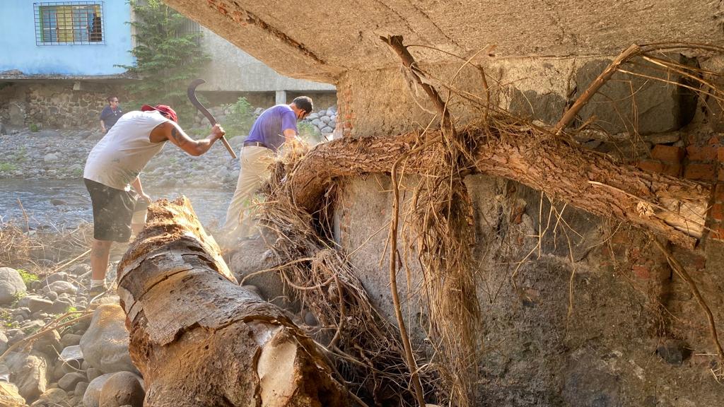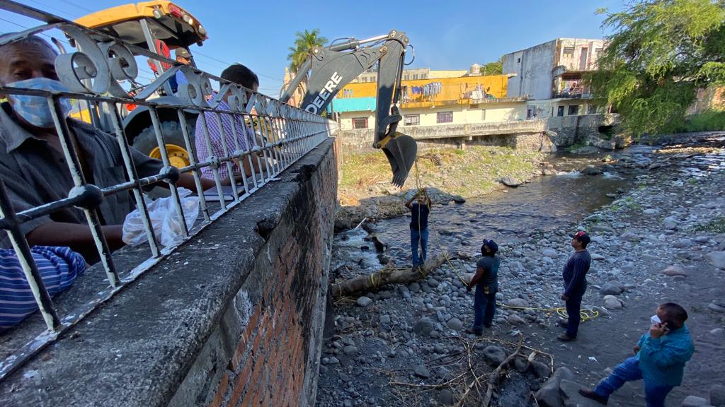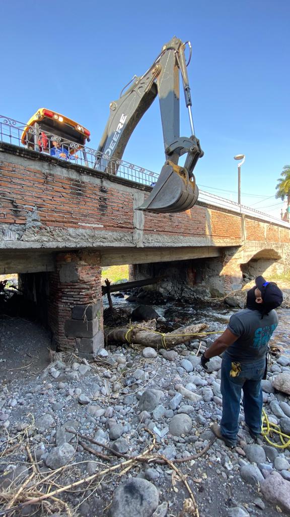 En atención a los reportes de las y los vecinos del barrio de La Salud, en el centro de la Ciudad, por instrucciones de la presidenta municipal, Margarita Moreno, la dirección de Servicios Públicos realizó el desazolve del puente de la calle Dr. Miguel Galindo que había acumulado troncos, ramas, basura y escombros, convirtiéndose en un riesgo para los vecinos del Río Colima.