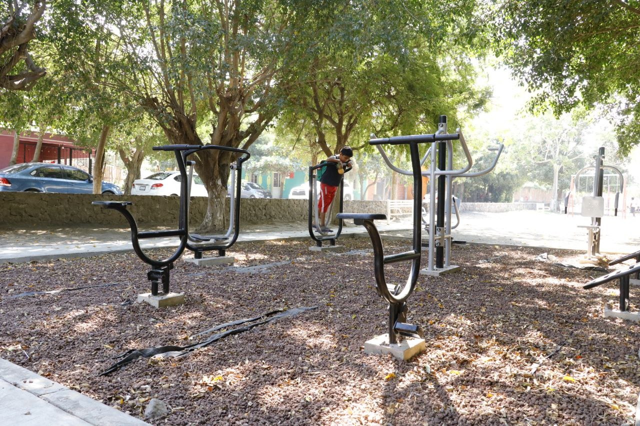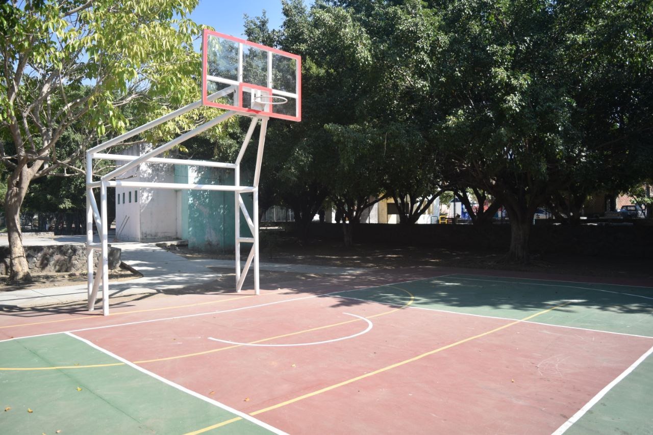 Añadió que además, se rehabilitaron las porterías, se colocaron nuevos tableros, así como nueve aparatos nuevos para ejercicio y se rehabilitaron siete más, en un espacio donde se colocó una capa de diez centímetros de tezontle.