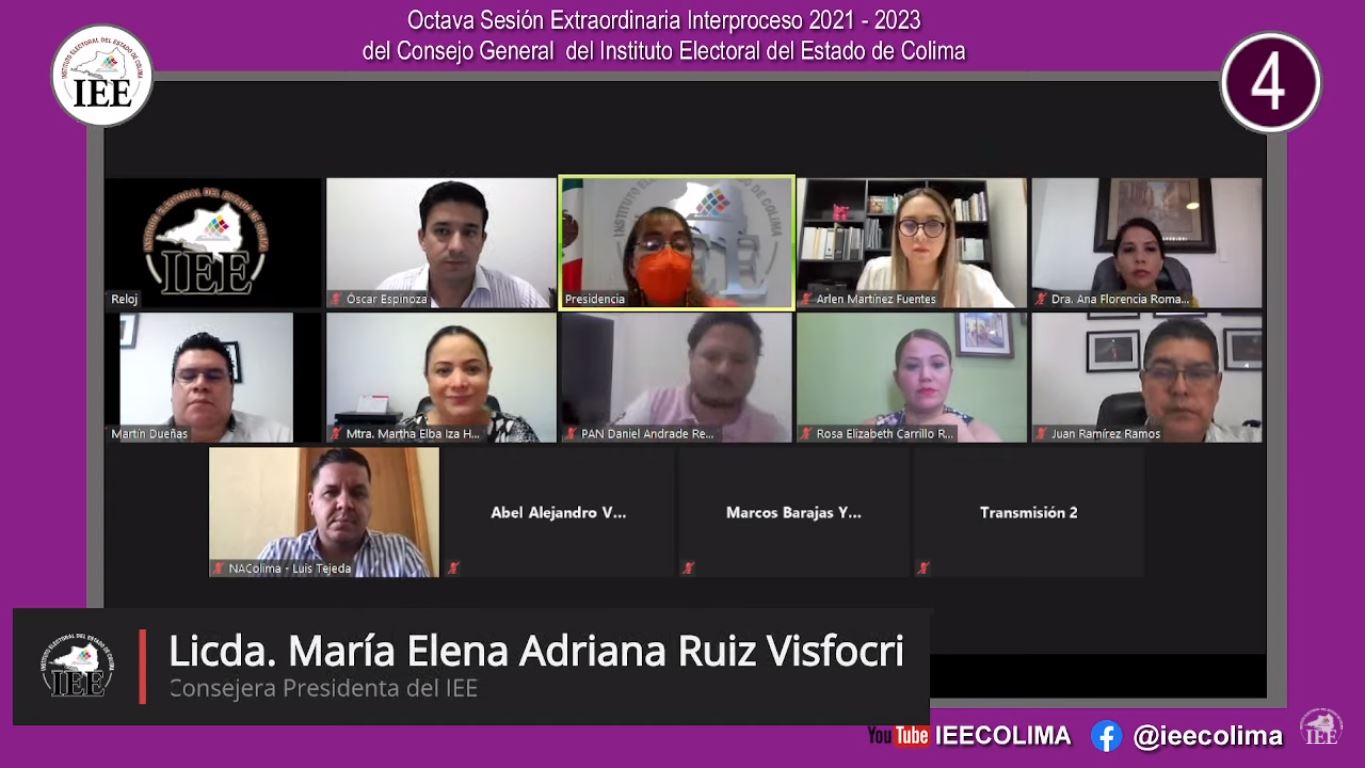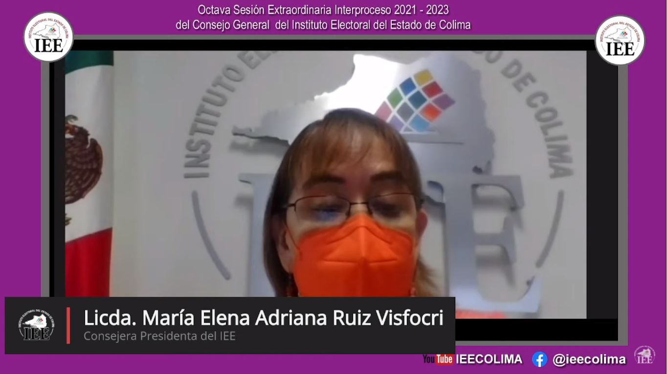“Me congratula que estemos dando término a esta etapa de los trabajos del Instituto Electoral del Estado de Colima, a cabalidad y en los tiempos que marca la ley”, destacó durante la sesión de este martes la Consejera Presidenta del IEE, María Elena Adriana Ruiz Visfocri, al indicar que se concluye la fase de solicitud de registro por parte de los otrora partidos políticos nacionales.