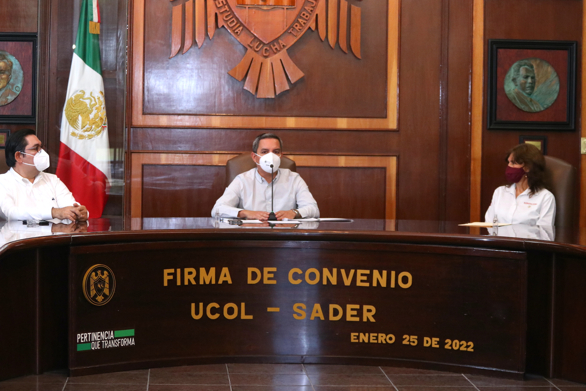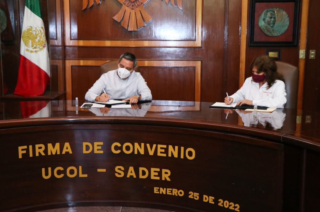 Este martes la Universidad de Colima, representada por su rector, el Dr. Christian Jorge Torres Ortiz Zermeño y la Oficina de Representación de la Secretaría de Agricultura y Desarrollo Rural (SADER) en el estado, a cargo de la Ing. María Esmeralda López Mendoza, firmaron un convenio de colaboración para realizar programas, proyectos y actividades en común y generar la transferencia de conocimiento entre ambas instituciones.