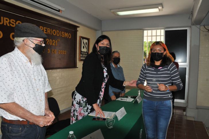 Valeria Marisol Miramontes González, con la crónica “Proveedor de un descanso obligado”, y Kevin Murillo Rosas, con el reportaje “No tenía idea de la magnitud de la pandemia: El comercio en tiempo de contingencia sanitaria”, ganaron los primeros lugares de la categoría I y II, respectivamente, del Premio de Periodismo “Manuel Delgado Castro”, que convocó la Facultad de Letras y Comunicación (Falcom) de la Universidad de Colima y cuyos premios fueron entregados este jueves.