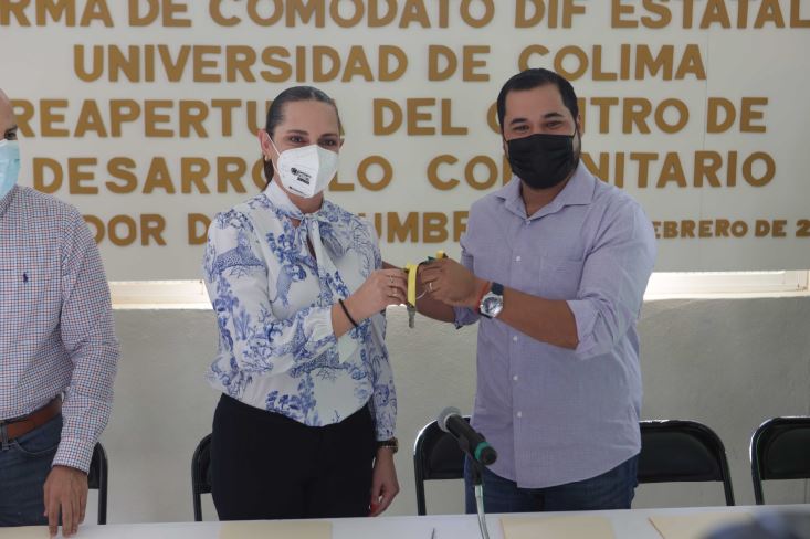 Esta miércoles, el Voluntariado de la Universidad de Colima, que preside Blanca Liliana Díaz Vázquez, recibió en comodato por parte del DIF Estatal Colima, las instalaciones del Centro de Desarrollo Comunitario (Cedeco), de la colonia Mirador de la Cumbre II, para su reapertura y puesta en funcionamiento.