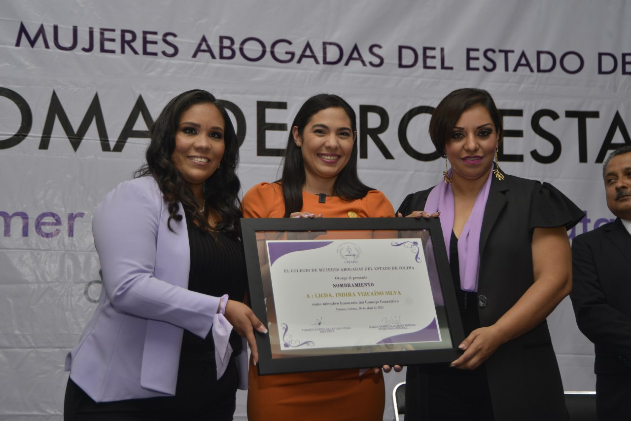 “Estoy convencida que el Colegio de Mujeres Abogadas del Estado de Colima será un referente para la sociedad colimense, que con su participación activa vamos a empoderar cada vez a más mujeres”, dijo la gobernadora Indira Vizcaíno Silva durante la toma de protesta a integrantes de esta nueva organización, presidida por Karina Alcántar Gómez y cuya vicepresidenta es Karina Vilchis Betancourt.