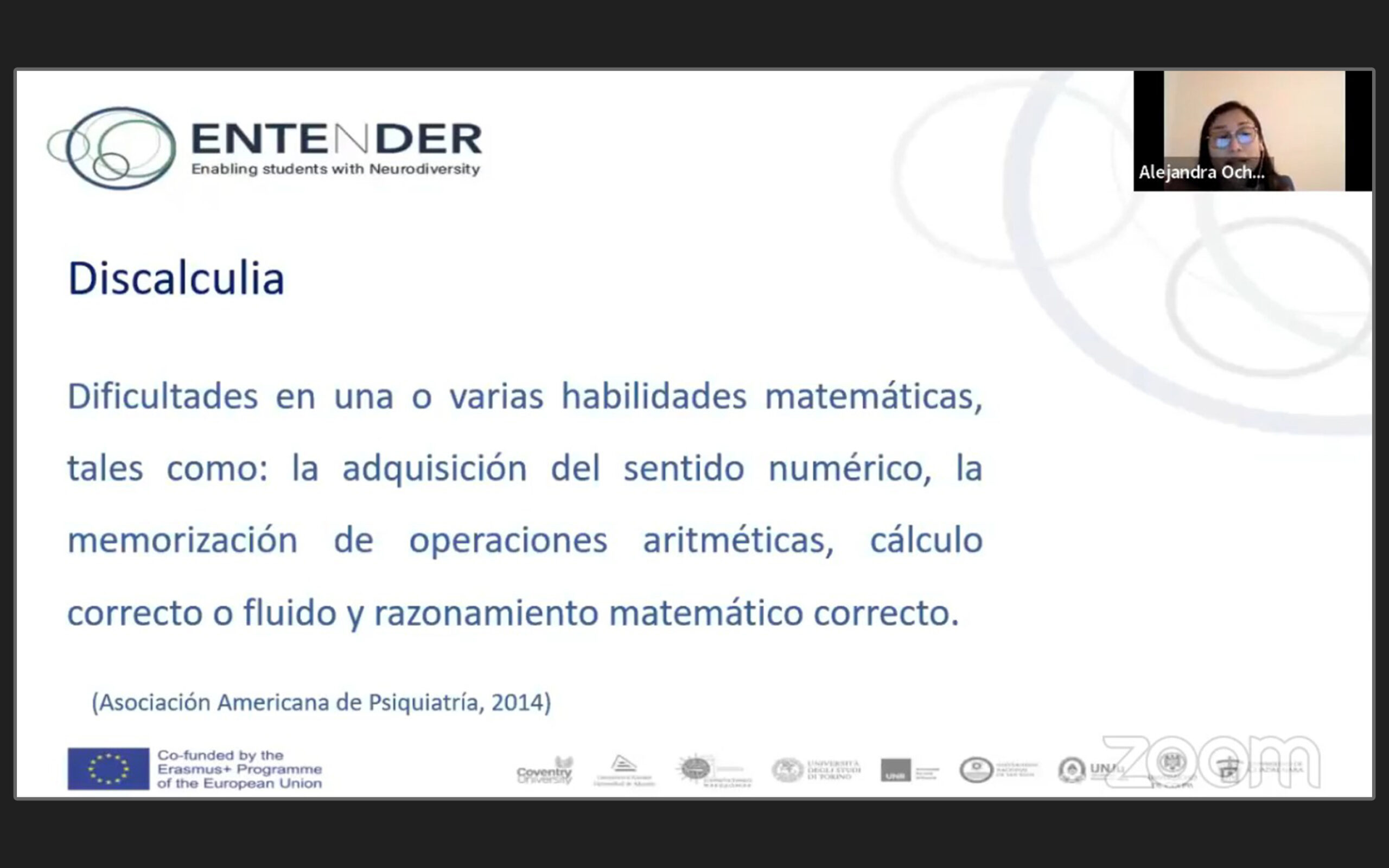 *Como parte del proyecto internacional ENTENDER, en el que participa la UdeC, la investigadora de la UNAM, Esther Ochoa dictó la conferencia virtual “Discalculia: cuando 1+1 no son igual a 2”.