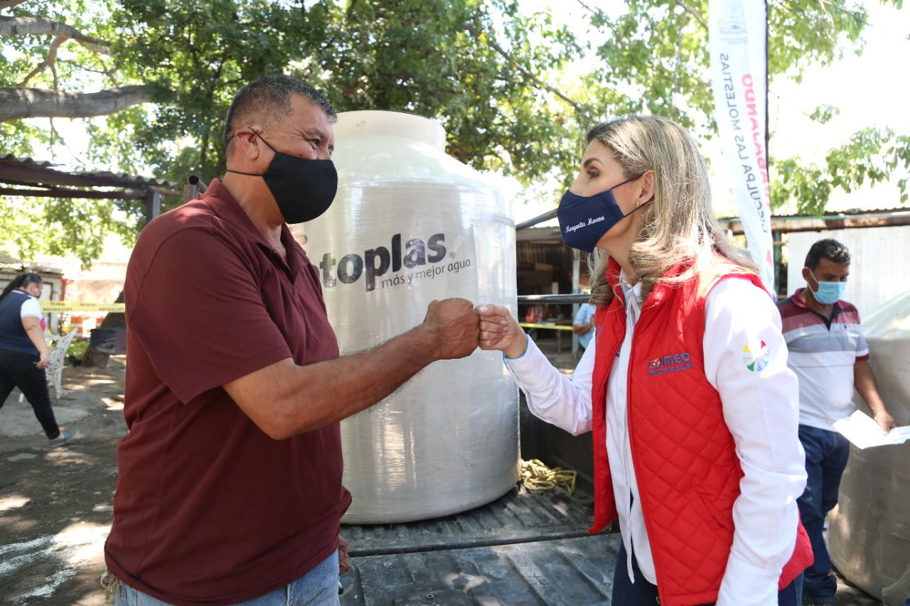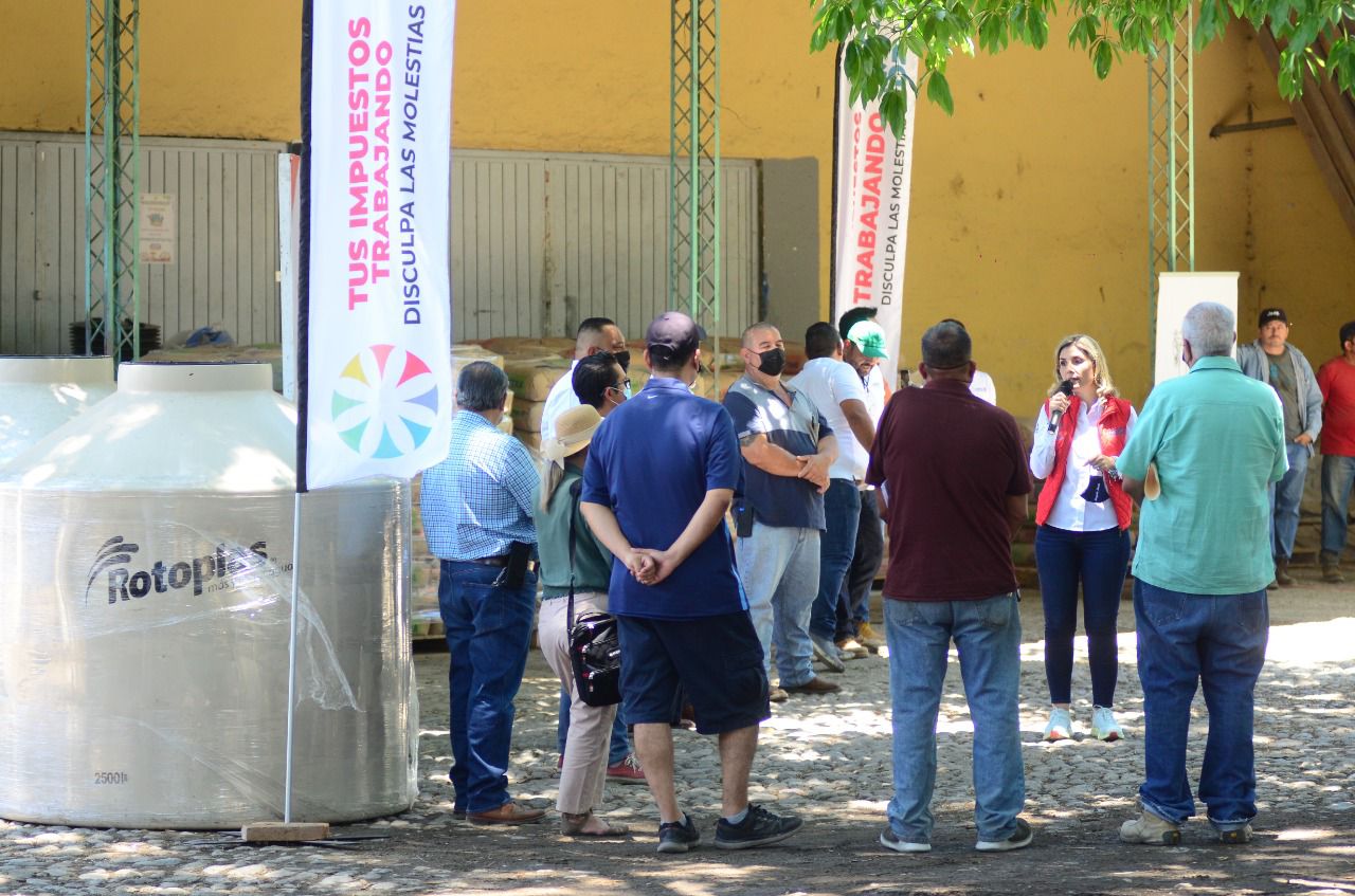La presidenta entregó 15 tinacos marca Rotoplas y 640 bultos de cemento a quienes resultaron beneficiarios del convenio de colaboración con la asociación civil, para que las familias del municipio puedan adquirir materiales para el mejoramiento de viviendas, con descuentos del 30 al 50 por ciento del valor real de los productos.