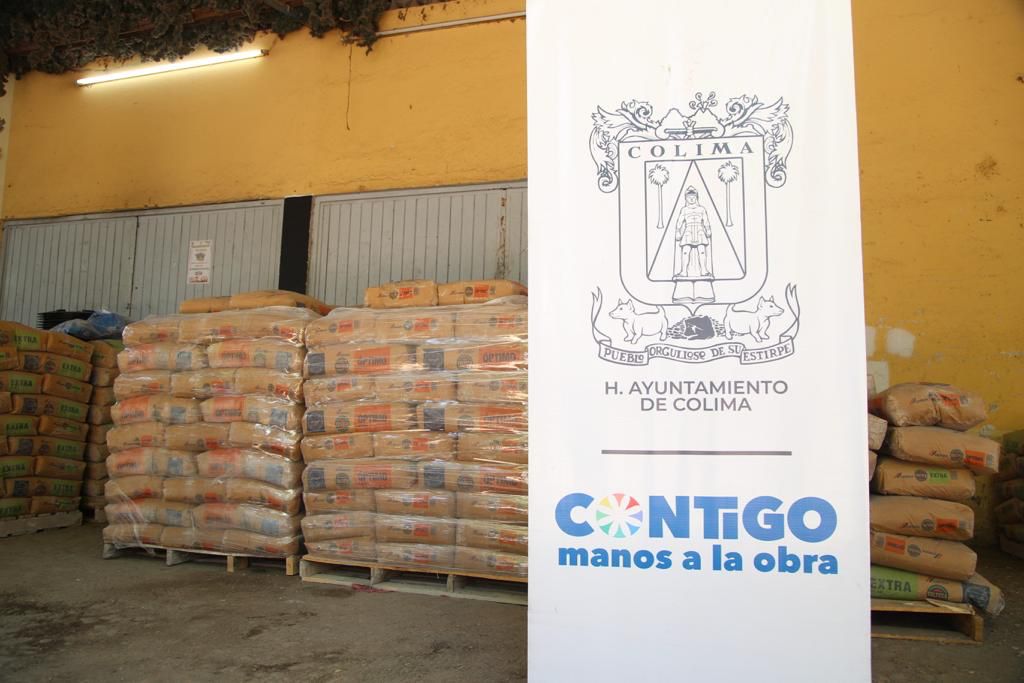 A través del Área de Vivienda, el Ayuntamiento de Colima realiza la gestión con la Congregación María Trinitaria A.C para dar un subsidio del 30 al 50 por ciento a 640 bultos de cemento, que equivalen a poco más de 32 toneladas, cuyo beneficio económico total es de 182 mil 940 pesos.