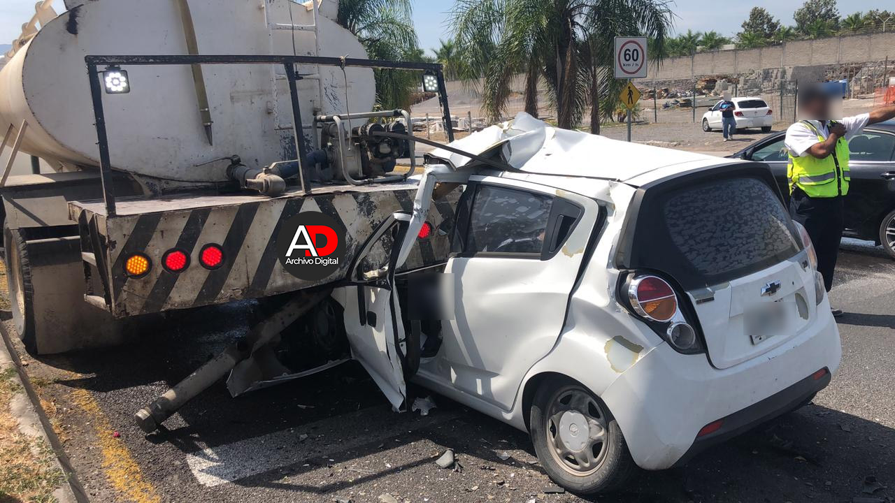 El fatal percance se registró poco antes de las 4 de la tarde, cuando al parecer en un descuido, el conductor de un vehículo March color blanco, se impactó en la parte posterior de una pipa de agua, falleciendo a consecuencia del fuerte impacto.
