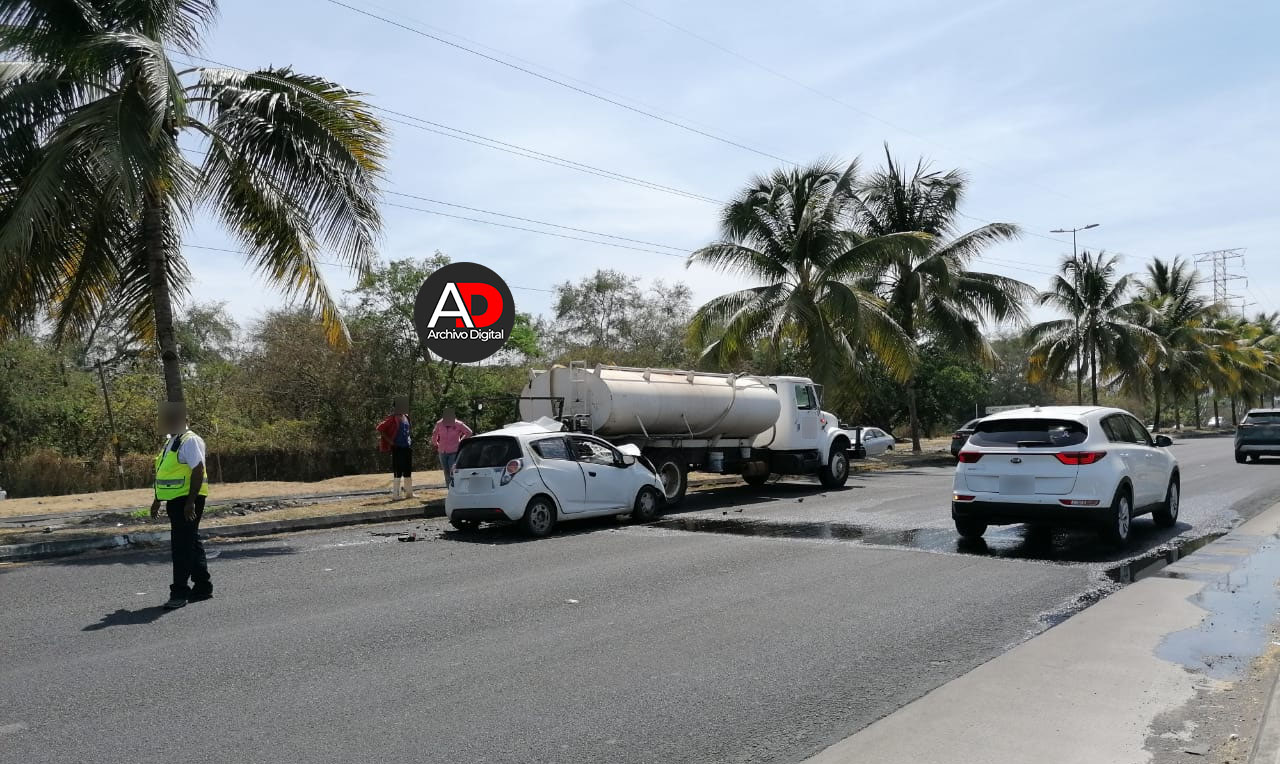 En un fuerte accidente registrado la tarde de este lunes, el conductor de un vehículo compacto perdió la vida al impactarse en la parte posterior de una pipa de agua que se encontraba regando el camellón sobre los carriles centrales del Tercer Anillo Periférico, casi frente a la plaza comercial “Sendera” en la ciudad de Villa de Álvarez.