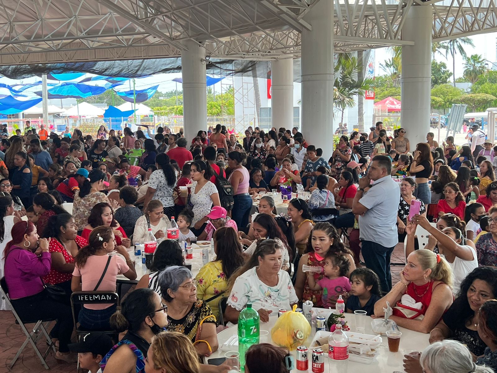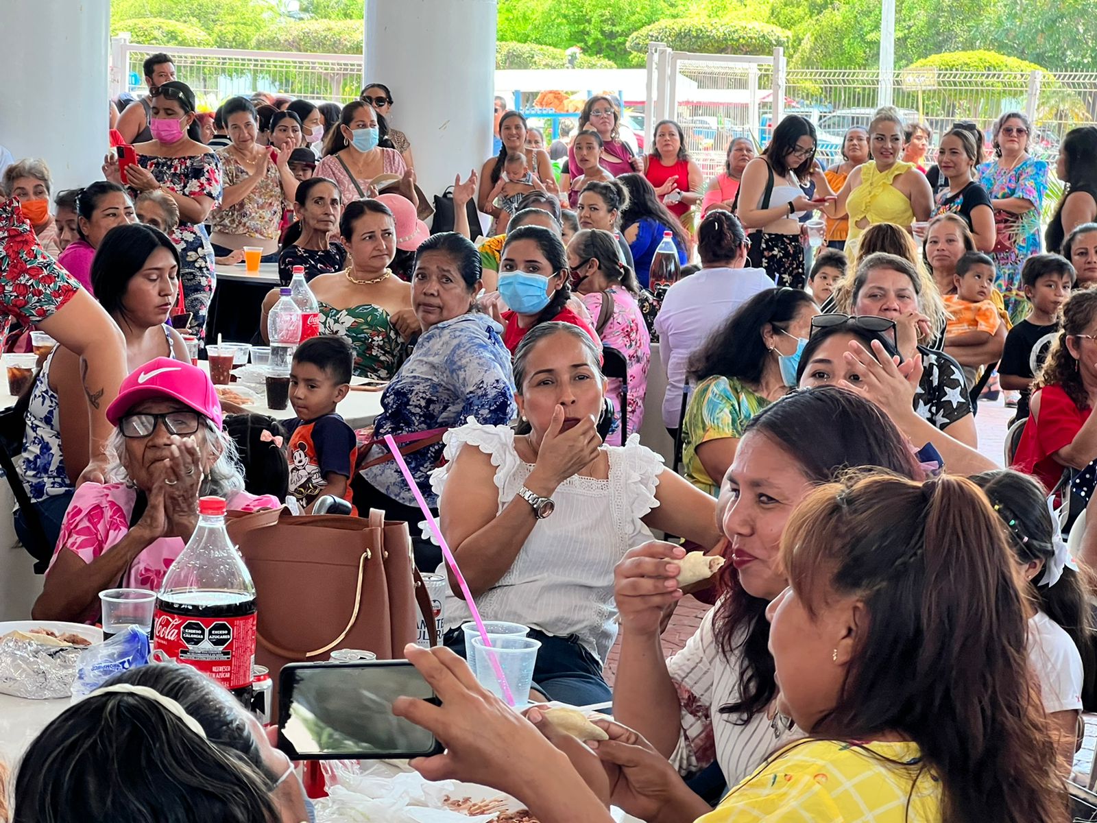 Más de 1 mil mamás manzanillenses, algunas acompañadas de sus hijos, fueron las protagonistas del festejo que el Ayuntamiento preparó para ellas en el Casino de la Feria, donde se les invitó a comer y a quienes se les entregaron premios y regalos.