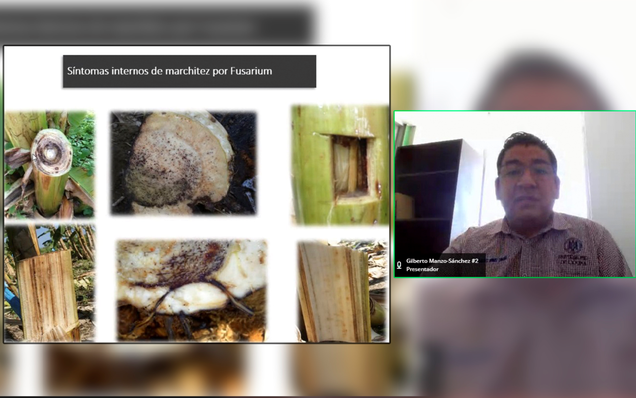 Como parte del II Simposio Internacional de Parasitología Agrícola que organizaron la Universidad de Colima y el Instituto de Ciencias Agrícolas de la Universidad Autónoma de Baja California (UABC), Gilberto Manzo Sánchez, investigador de la Facultad de Ciencias Biológica y Agropecuarias (FCBA), campus Tecomán, impartió la conferencia: “Fusarium raza 4 tropical, el principal enemigo de las musáceas” [plátanos y bananos].