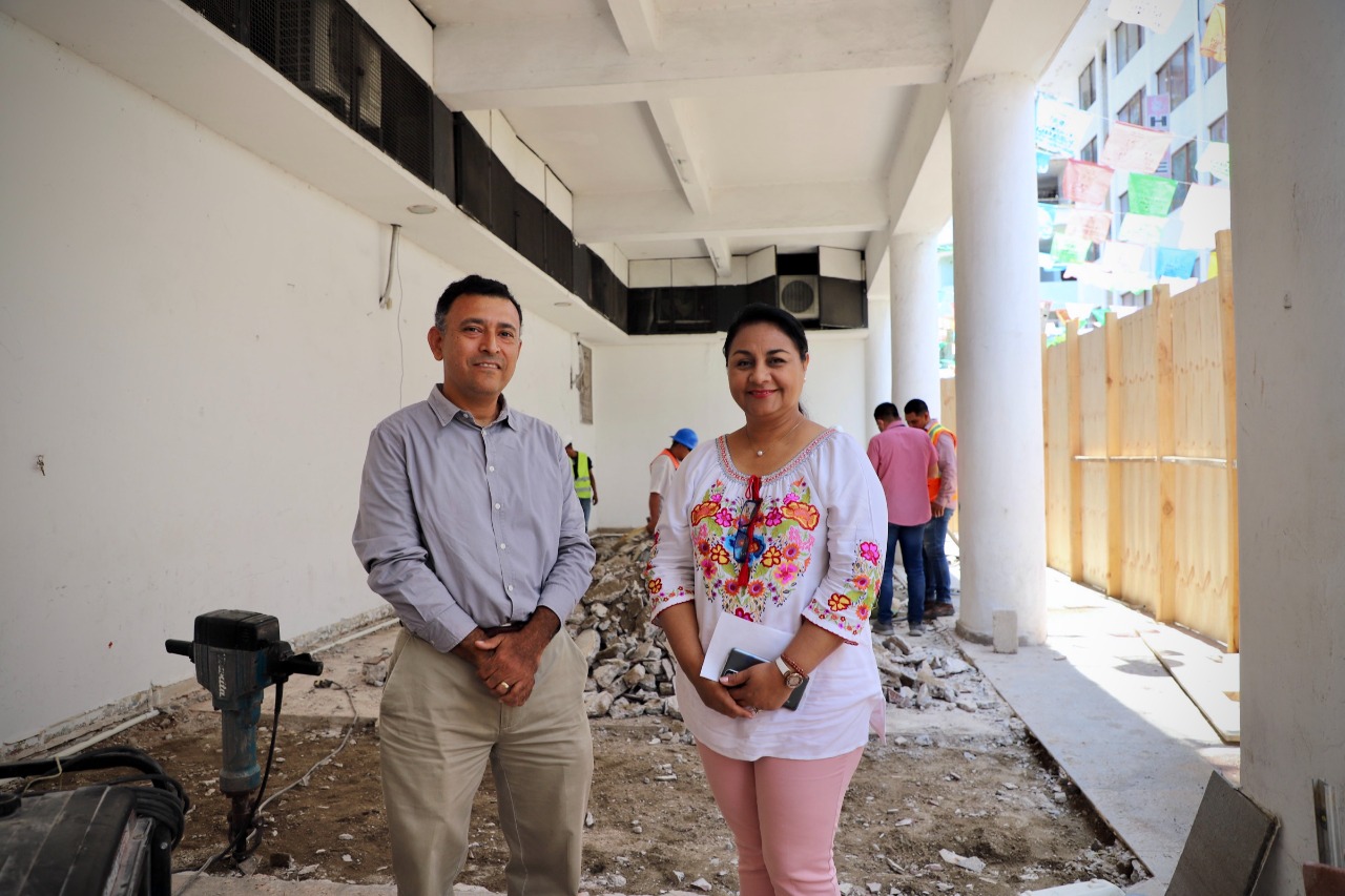 En el lugar, la alcaldesa supervisó el inicio de los trabajos para desarrollar este proyecto que consiste en la construcción de tres módulos de baños, a base de muros de panel w estructural, los cuales tendrán un rehilete de acceso controlado, “cuando esté cerrada la presidencia y no puedan acceder a los baños, estos nuevos módulos serán una muy buena opción”.