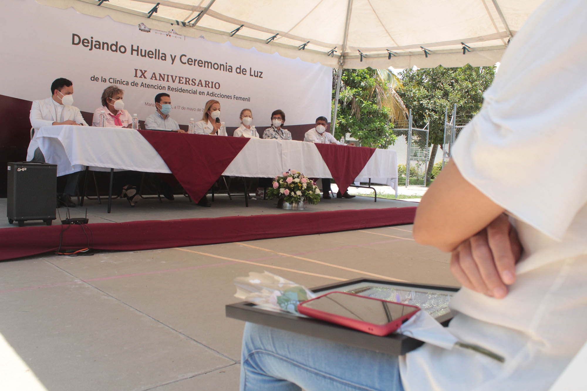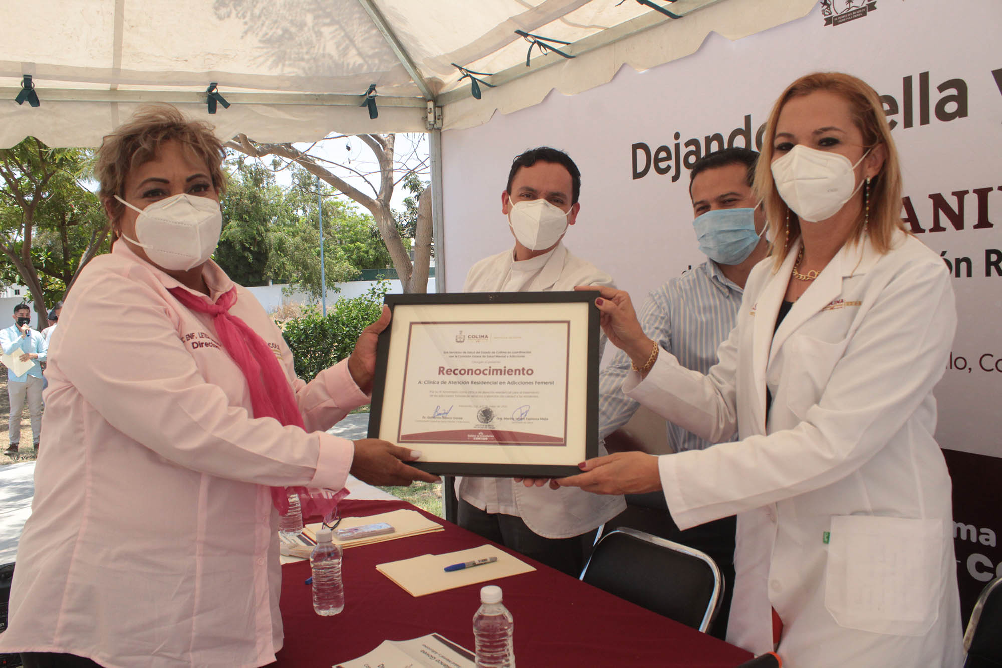 Durante esta ceremonia de luz, en la que se entregó un reconocimiento a la clínica, constancias a exusuarias en abstinencia y se hizo pinta de huellas, la jefa del Departamento de Salud Pública del Ayuntamiento de Manzanillo, Lilia Carlos López, reconoció a todas y todos los profesionales de la salud de esta CARA, por contribuir al bienestar de las mujeres que afrontan esta problemática y subrayó que Colima está a la vanguardia, porque no todos los estados cuentan con este modelo de ayuda integral a personas que padecen adicciones.