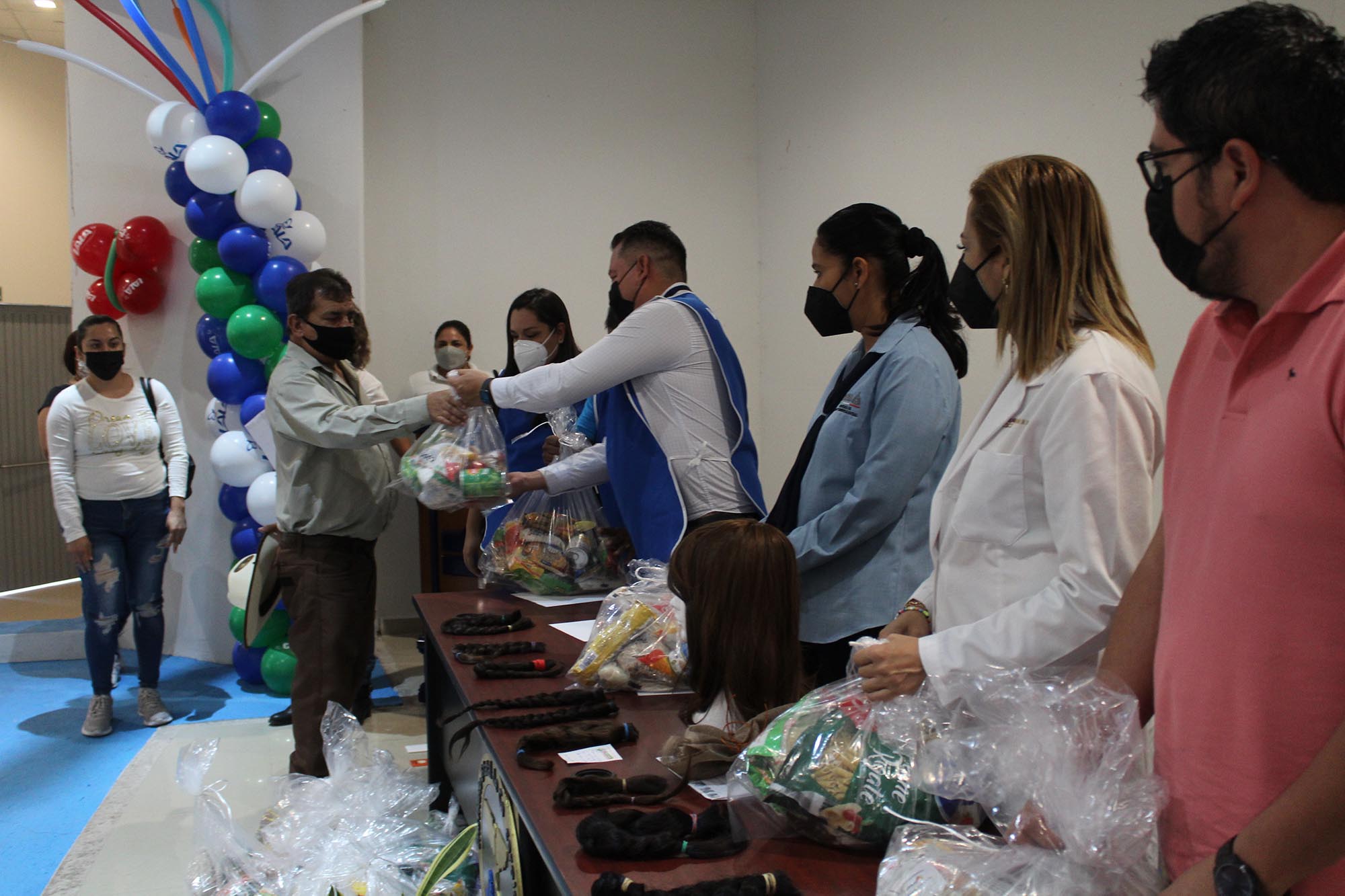 La empresa donó shampoo para kits de 30 pelucas, nueve trenzas de cabello, dos racks organizadores y 31 despensas, mientras que la Secretaría de Salud donó una peluca oncológica para la empresa.