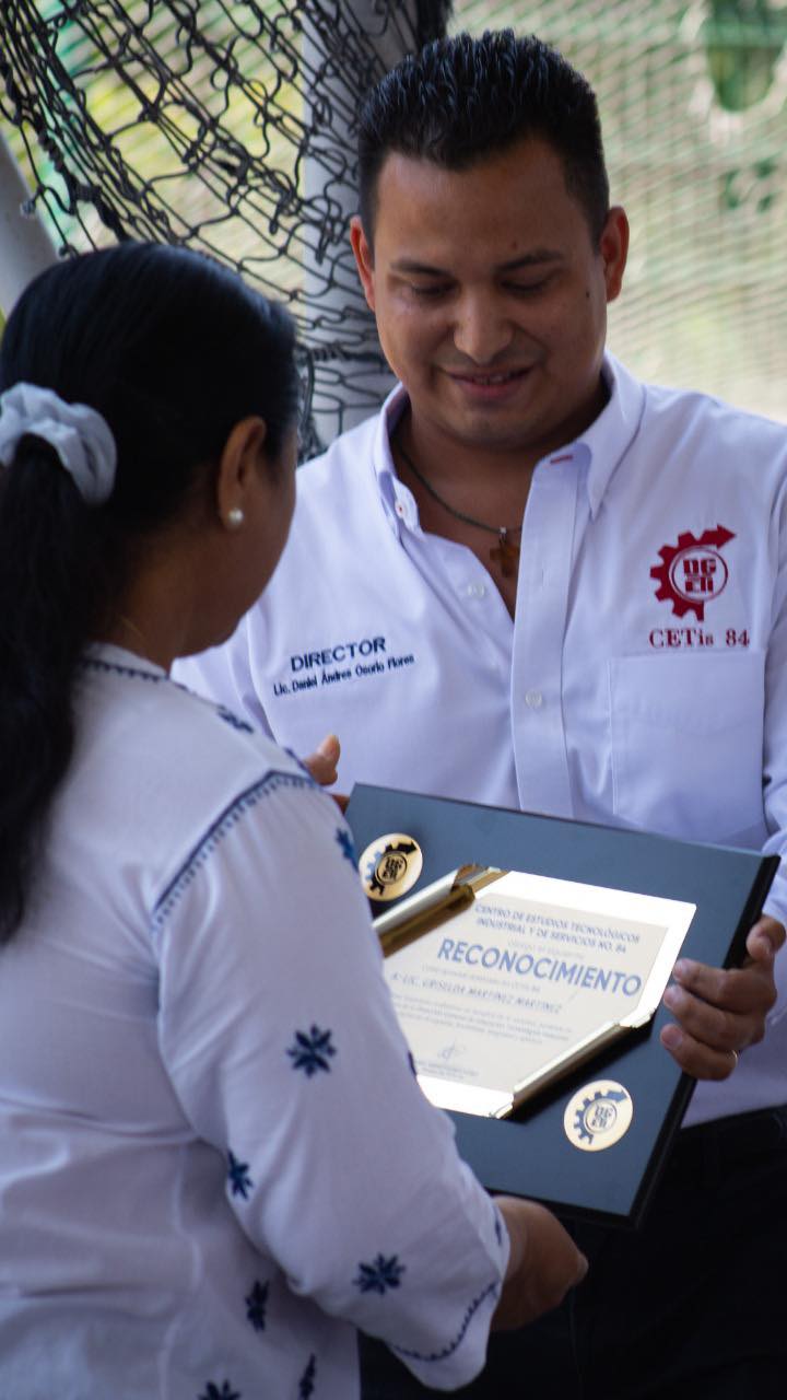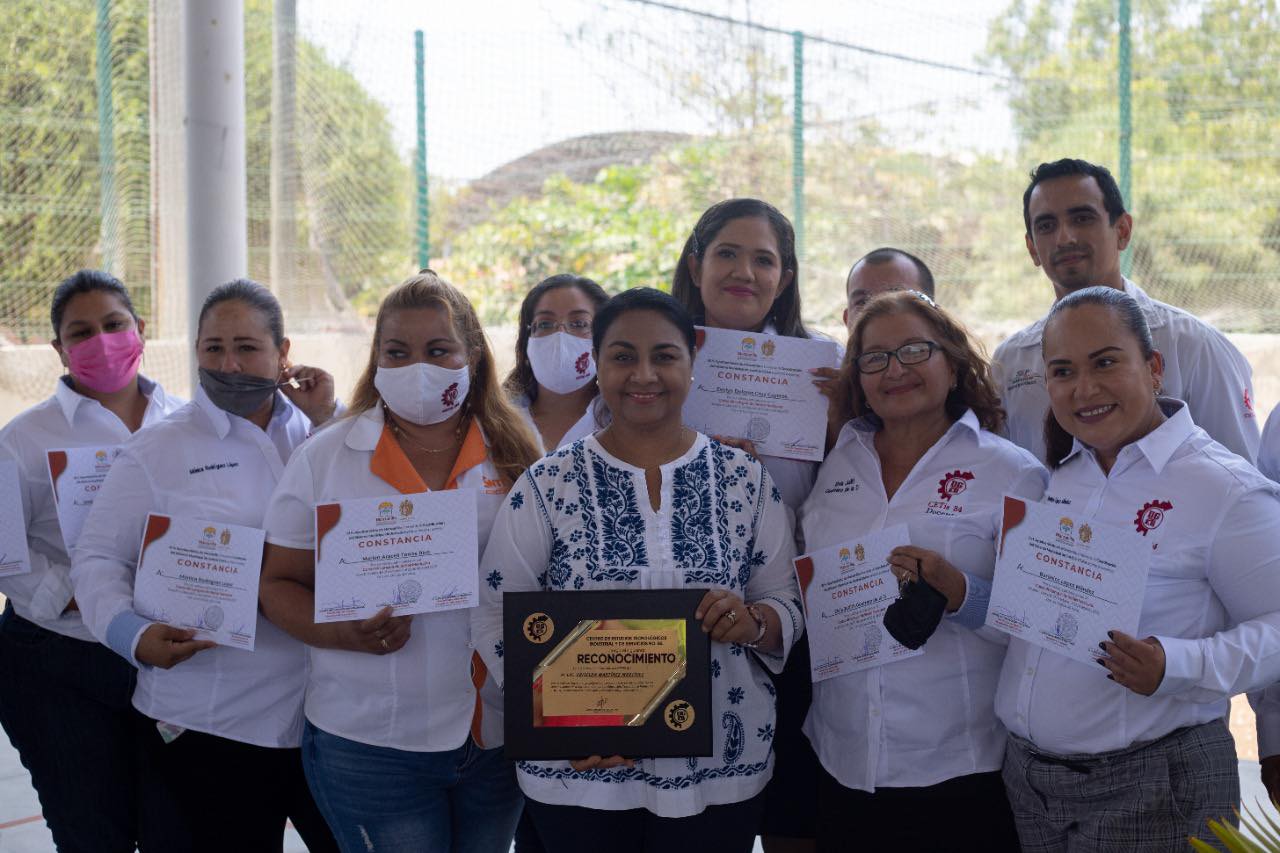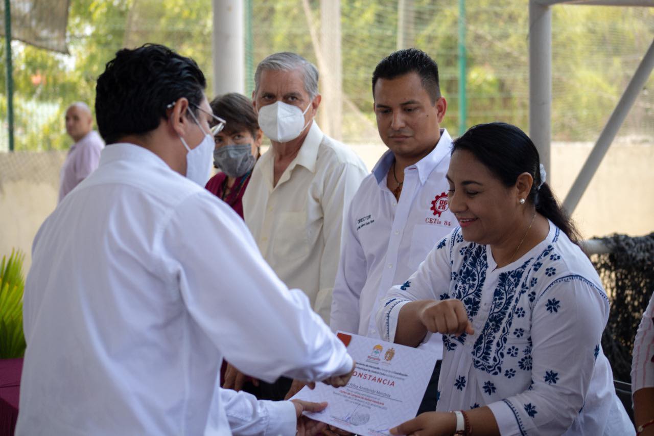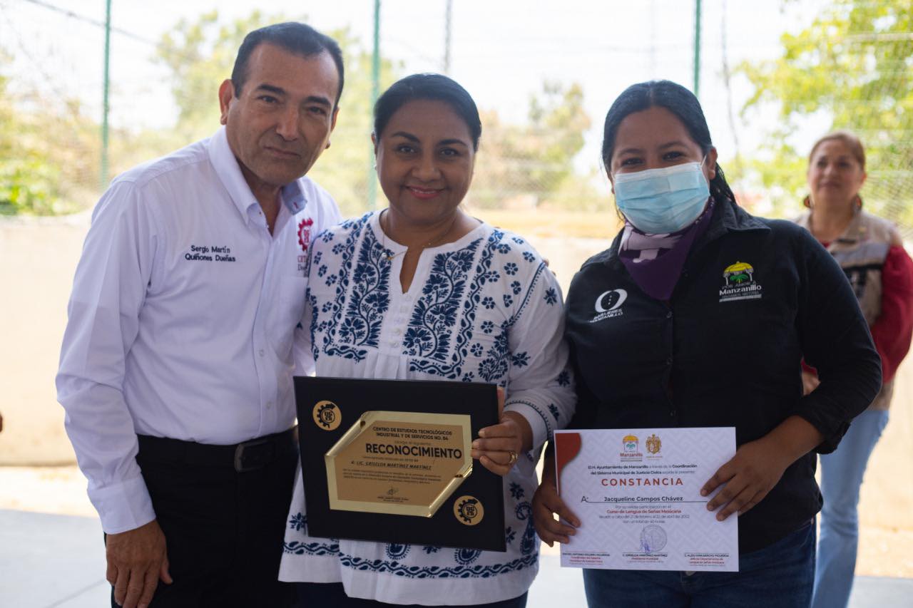 Al reconocerla como alumna destacada cuando cursó sus estudios en el Centro de Estudios Tecnológicos Industrial y de Servicios CETIS 84, la presidenta Griselda Martínez entregó las constancias del curso de lengua de señas mexicanas nivel básico que se ofreció para diversos planteles educativos. Ahí la alcaldesa, al recordar su paso por el plantel, se dijo gustosa por apoyar a todas esas personas que tienen dificultad de comunicarse y para lo cual se requiere un método específico.
