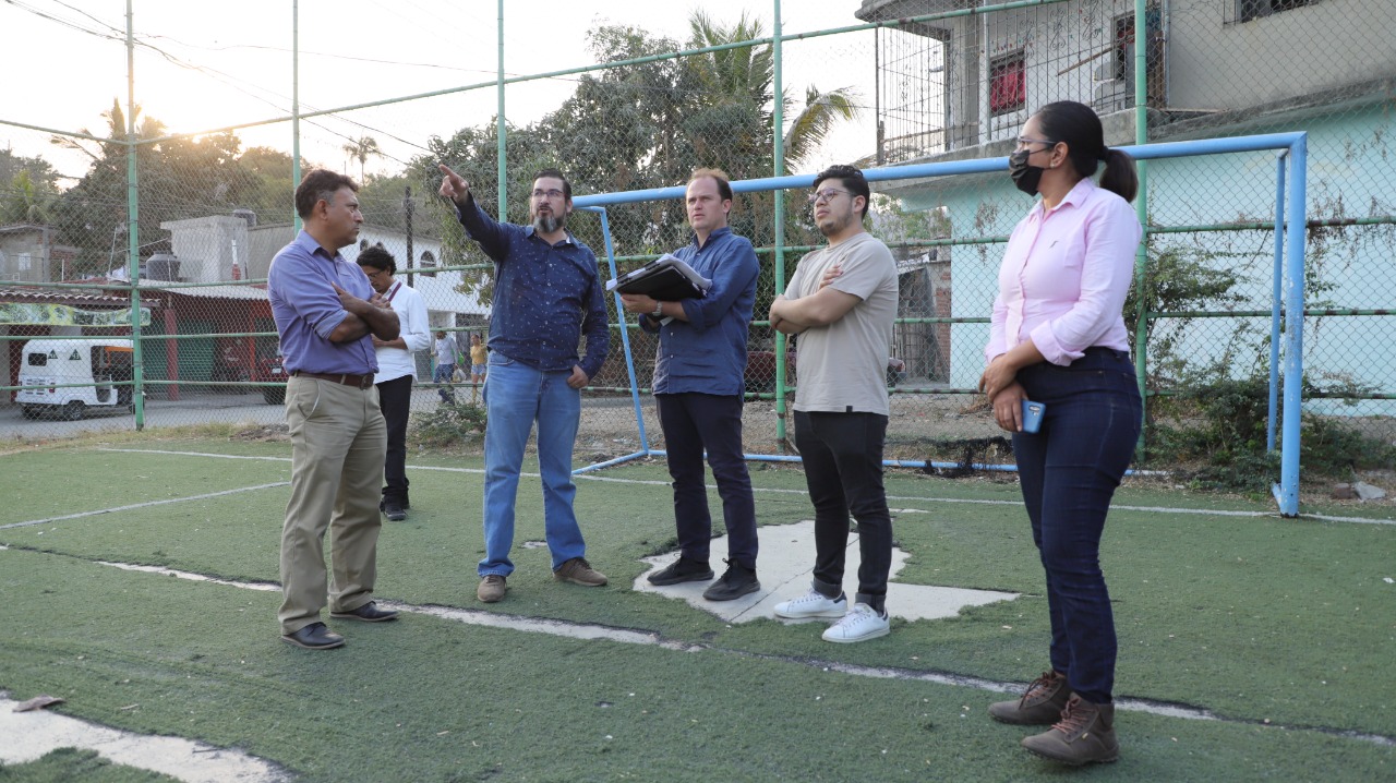 Otra área visitada y que también será intervenida, fue el jardín principal de El Colomo, donde como principal acción será trasladar su cancha deportiva a espaldas de éste para generar una mejor vista, la cual podría ser techada con ligero bambú; será impactado también el kiosco, se mejorarán las condiciones de las vialidades que lo circundan, con lo cual se beneficiará las áreas peatonales; los juegos infantiles también serán modernizados y se construirá una nave para diversos usos.
