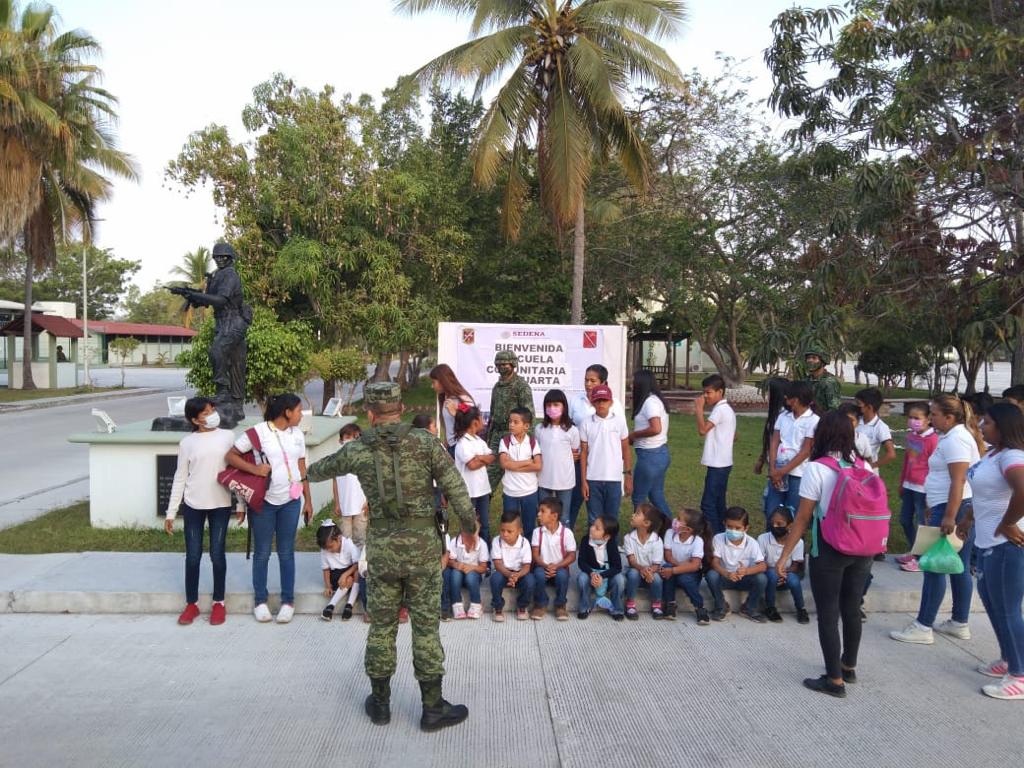 Docentes y alumnos de la “Escuela Comunitaria la Cuarta” visitan las instalaciones del 88/o B.I. ubicado en Tecomán.