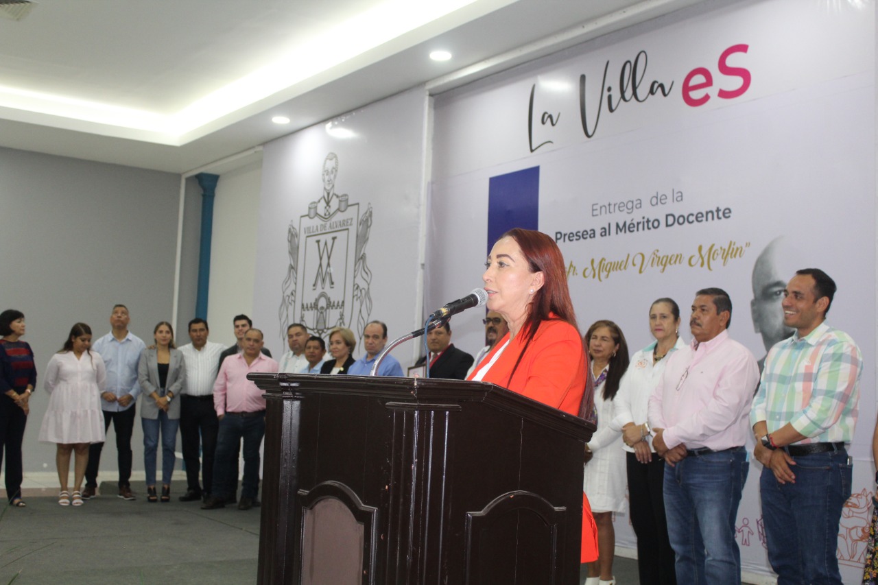 María del Socorro Virgen, hija del Profesor Miguel Virgen Morfín, agradeció a la Presidenta Tey Gutiérrez por retomar la Presea al Mérito Educativo que lleva el nombre de su padre, pues es un homenaje también para él, además pidió se coloque el busto de su papá en la Rotonda de los Villalvarenses Ilustres.