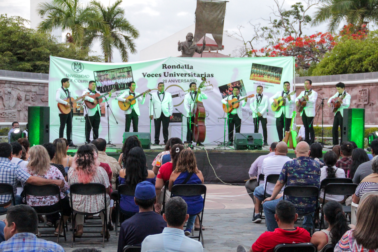 Este fin de semana se realizó, en el jardín principal de Tecomán, el Encuentro Nacional de Rondallas “Dos décadas de amor”, que organiza la Universidad de Colima a través del Bachillerato 20, en el marco de la celebración del 20 aniversario de la Rondalla Voces Universitarias de la delegación universitaria de Tecomán.