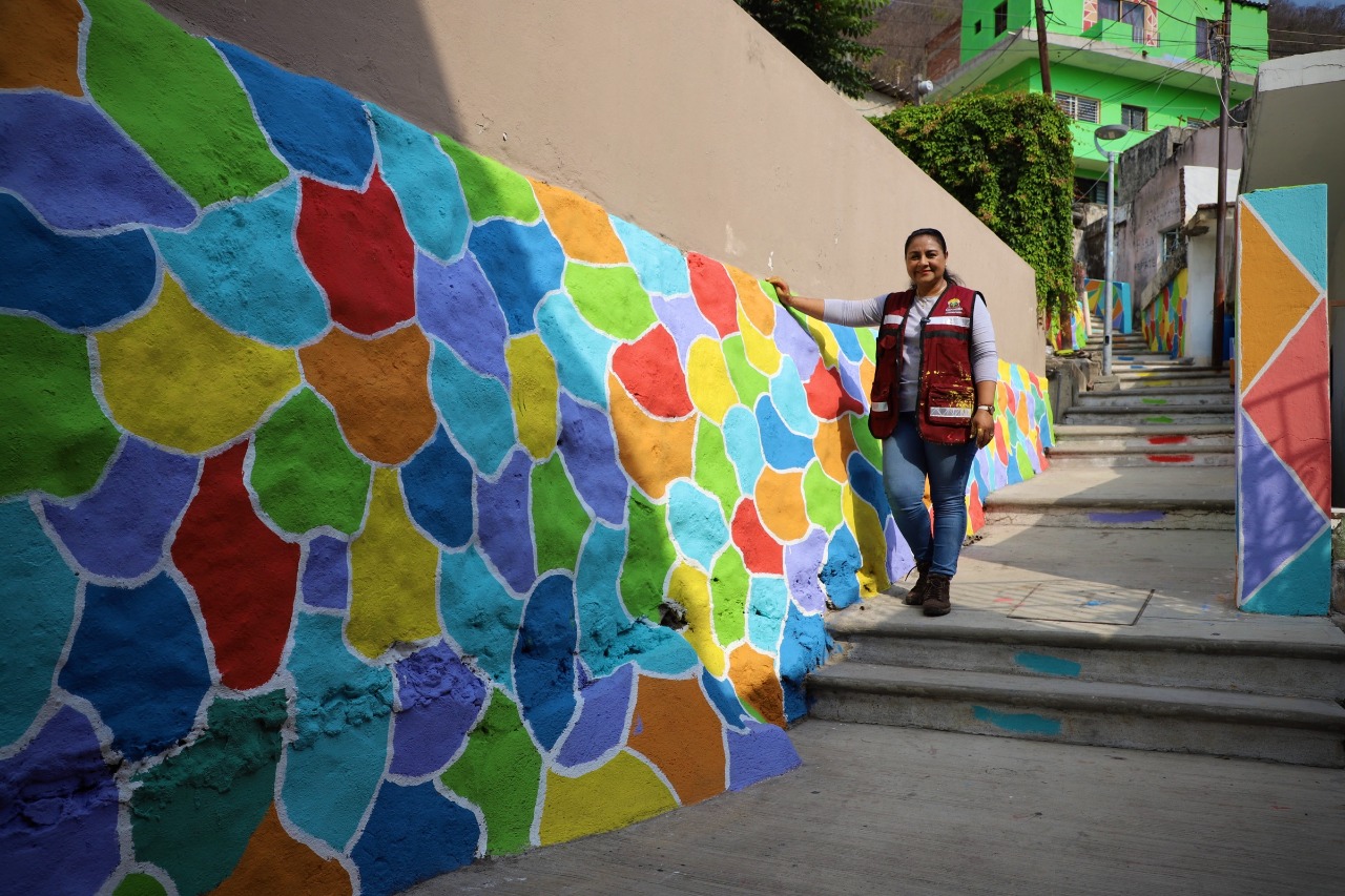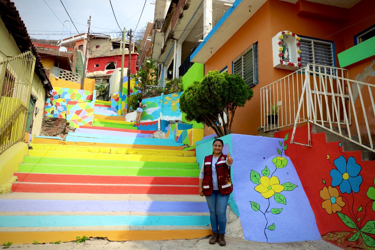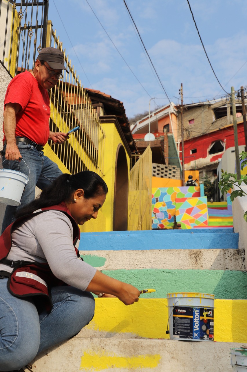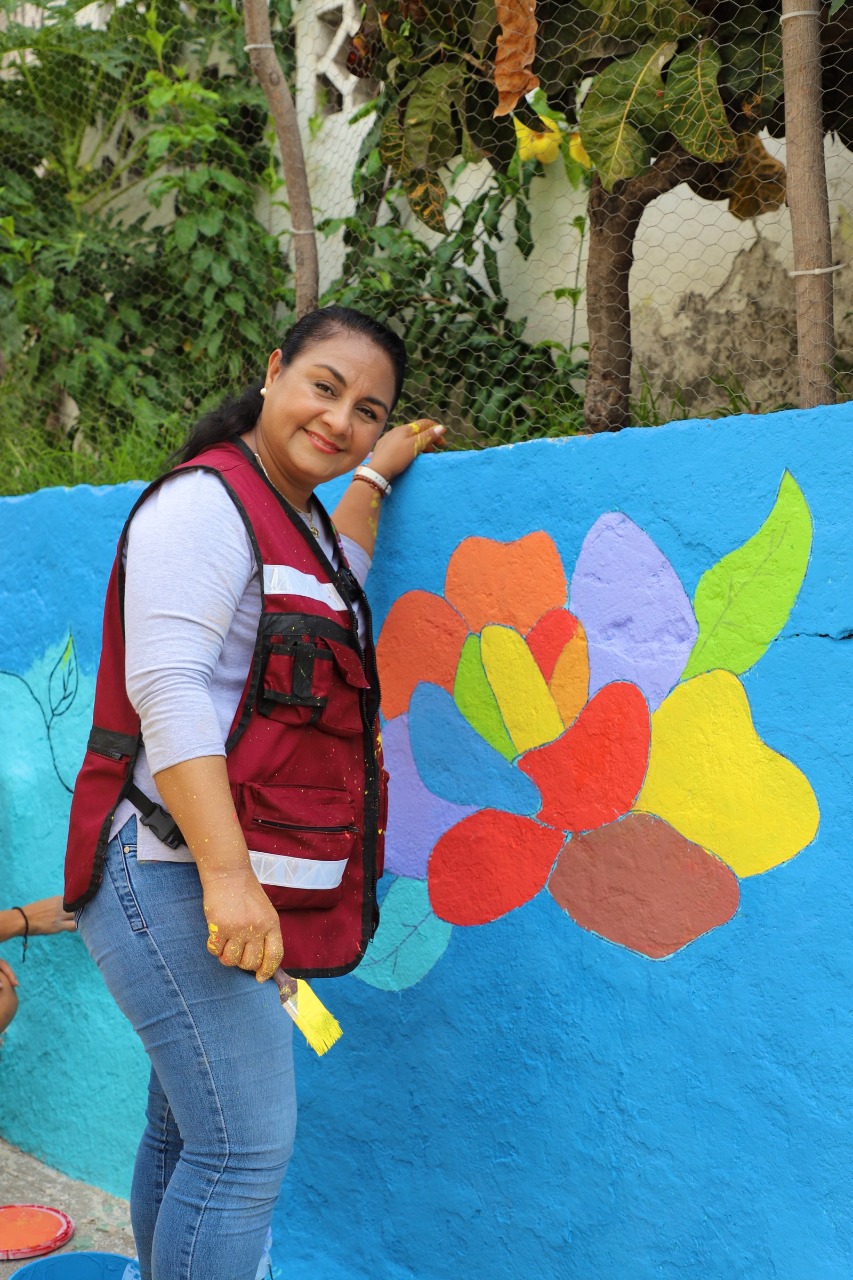 La presidenta Griselda Martínez participó pintando, tanto áreas públicas como fachadas de algunos hogares; incluso colaboró en los detalles de una flor en honor a la comunidad LGBTTI. También agradeció la participación de la gente que habita ahí, pues incluso por propia iniciativa en algunas fachadas de sus hogares pintaron murales con distintos motivos.