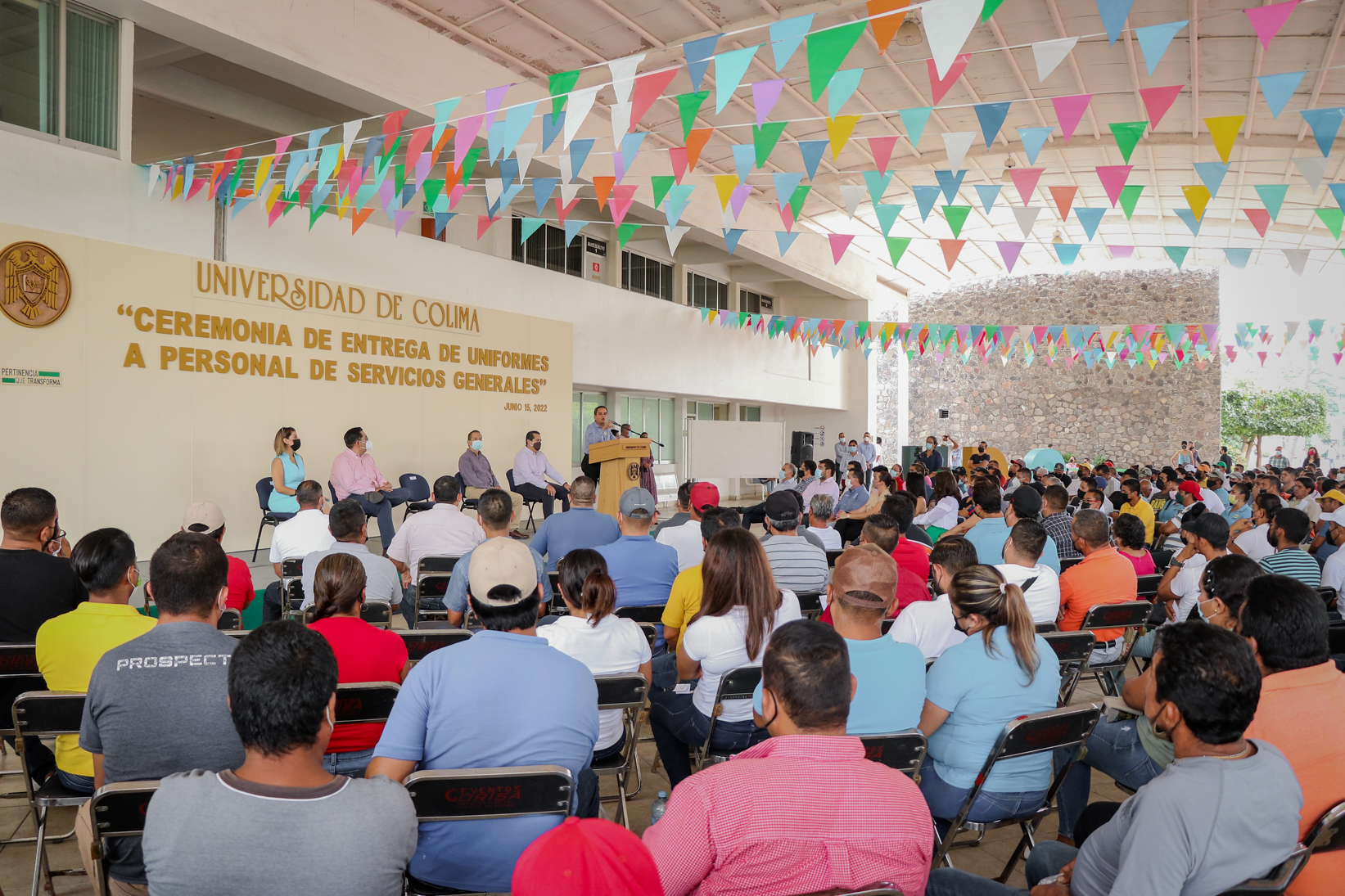Al entregar 542 uniformes al personal de servicios generales este miércoles, el rector Christian Jorge Torres Ortiz Zermeño dijo que “todos los universitarios y universitarias somos iguales en la institución, simplemente tenemos responsabilidades diferentes y eso nos no hace más ni menos a unos y a otros; somos iguales, somos compañeros y compañeras de trabajo que juntos y juntas hemos edificado y defendido esta gran institución”.