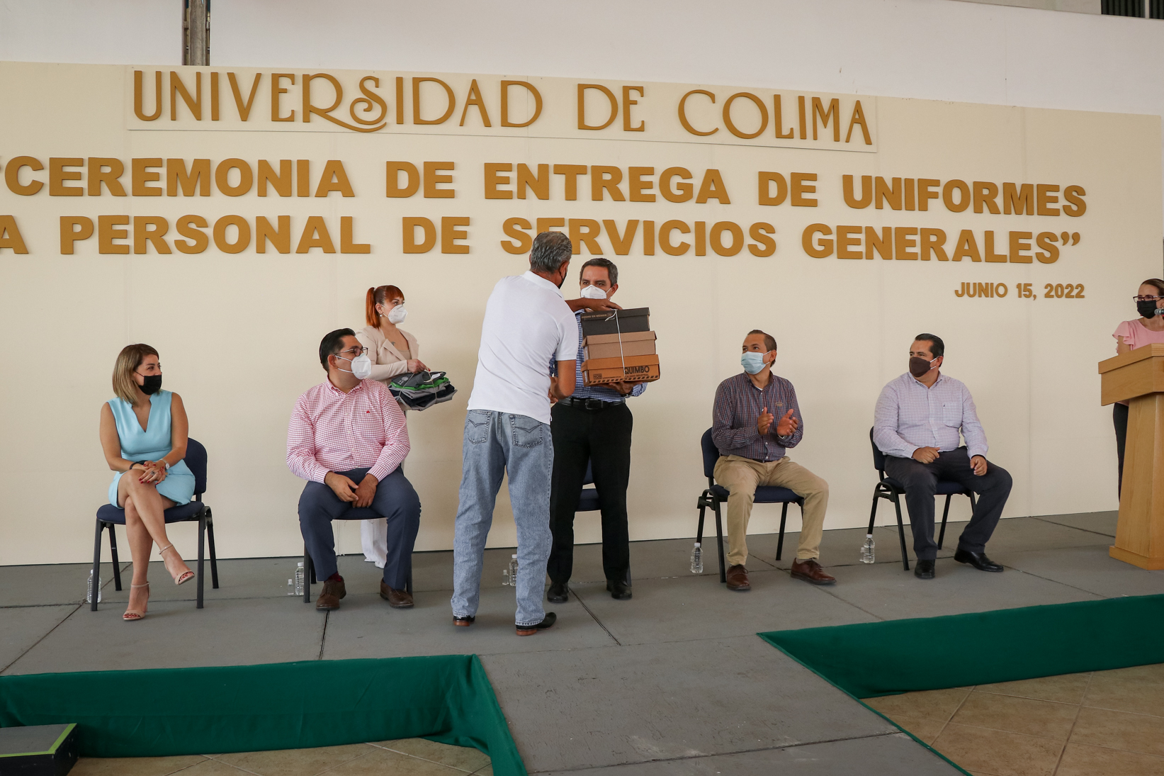En el presidium estuvieron Joel Nino, Secretario General; Érika Ulibarri, coordinadora general Administrativa y Financiera y Celso Armando Ávalos, director general de Recursos Humanos, y como invitados especiales: Blanca Liliana Díaz, Presidenta del Voluntariado de la UdeC; Ana María Gallardo, delegada de Manzanillo; Carlos A. Montes, delegado de Tecomán, Juan Diego Gaytán, delegado de Colima; Francisco Ventura, delegado de Coquimatlán; Adrián López, delegado de Villa de Álvarez y Priscilia Álvarez, tesorera de la casa de estudios.