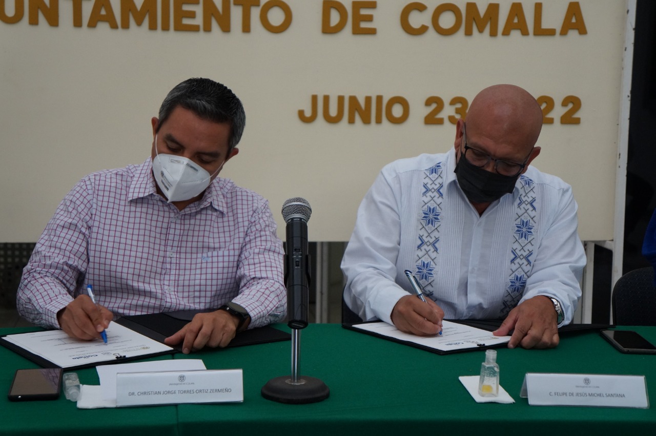 Esta mañana, en las instalaciones de los bachilleratos número 25 y 17 de la Universidad de Colima, se llevó a cabo la firma de convenio de sesión en comodato, entre quienes encabezan el H. Ayuntamiento de Comala, Felipe Michel Santana y el Rector de la Universidad de Colima, Christian Torres Ortiz Zermeño, contando con la presencia de la Secretaria del H. Ayuntamiento de Comala, Adriana Jiménez, el Secretario General de la UdeC, Joel Nino Jr. Síndica, Regidores, funcionarios del H. Ayuntamiento, directores y personal de ambos planteles educativos.