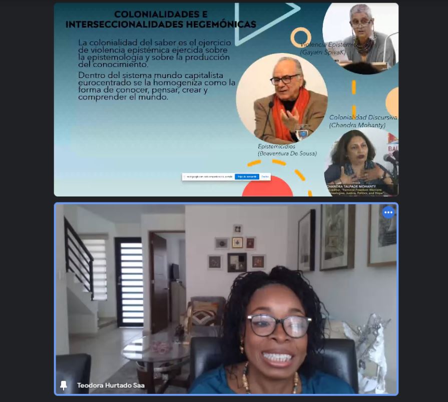 En la tercera participación, la Dra. Teodora Hurtado Saa habló sobre “Agendas pendientes en las IES en materia de igualdad: los no lugares de las epistemologías feministas, de las investigaciones de la producción intelectual de las mujeres subalterizadas”. Entre otras cosas, dijo que “la cultura laboral e institucional, sin ser su aspiración, puede llegar a favorecer la formación de patrones de desigualdad e inequidades; tales procesos de inclusión o exclusión inciden con más fuerza en el caso de las mujeres”.
