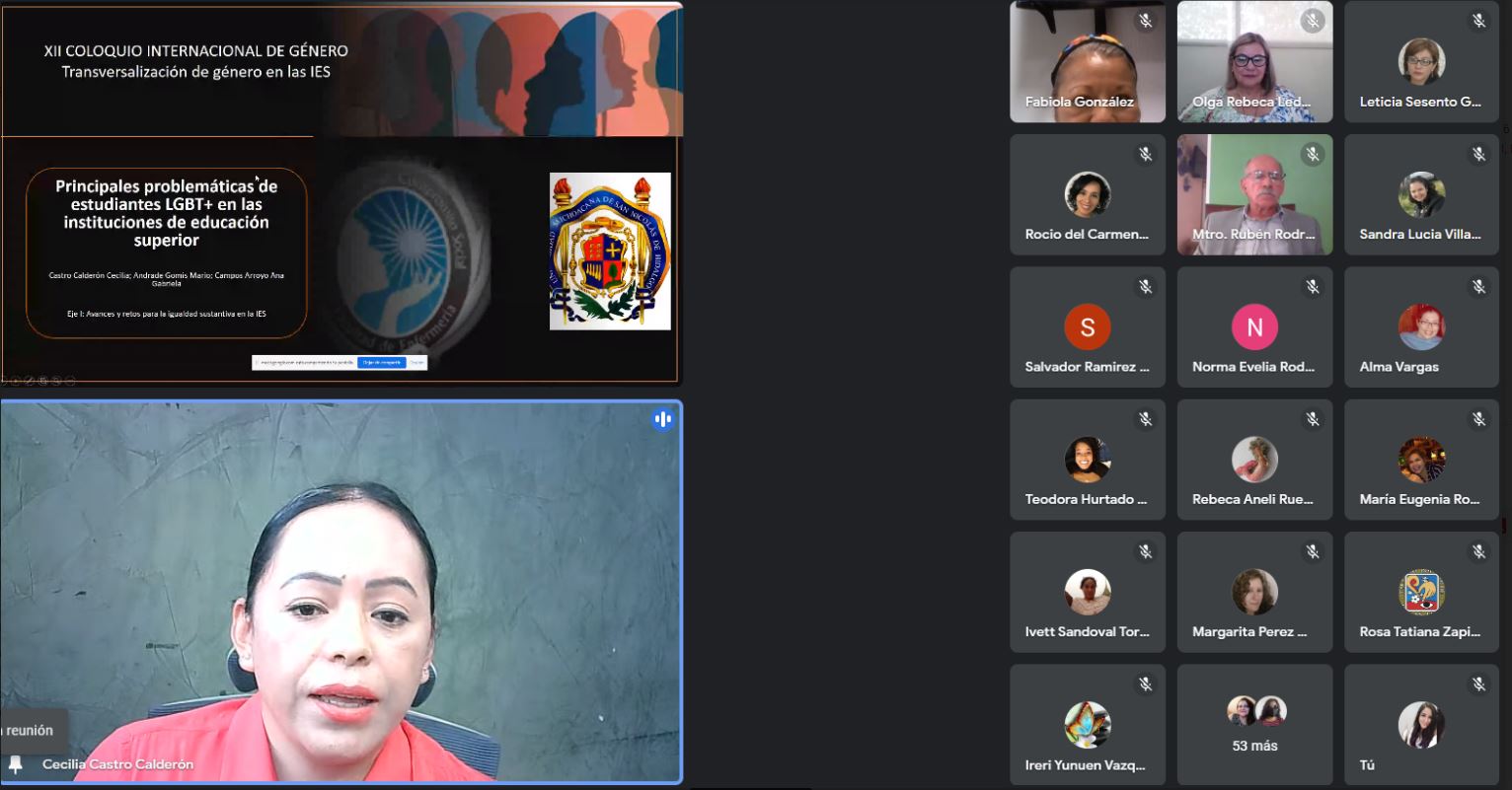 Como parte de las actividades del XIII Coloquio internacional de género en las Instituciones de Educación Superior (IES), se realizó la mesa de trabajo virtual “Avances y retos para la igualdad sustantiva de las IES”, en la que se presentaron seis ponencias de docentes de la Universidad Michoacana de San Nicolás de Hidalgo (UMSNH) y la Universidad de León, Guanajuato.