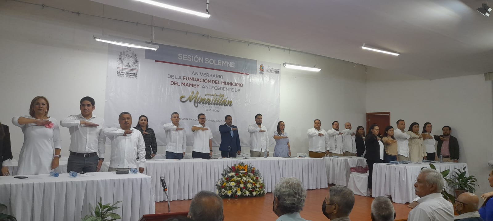 Acompañado, de Jorge Padilla, sub secretario de Turismo, en representación de la gobernadora del Estado, Indira Vizcaíno Silva, Ricardo Chavez,en representación del Magistrado Bernardo Alfredo Salazar Santana, presidente del Supremo Tribunal de Justicia del Estado; del alcalde de Minatitlán, Cicerón Alejandro Mancilla González, García Negrete, agregó, Minatitlán es digno de admirar y reconocer, pues su existencia como municipio, no a sido fáci, pues en varias ocasiones le fue retirada la categoría de municipio y dependió de la “Villa de Almoloya”, hoy Villa de Álvarez.