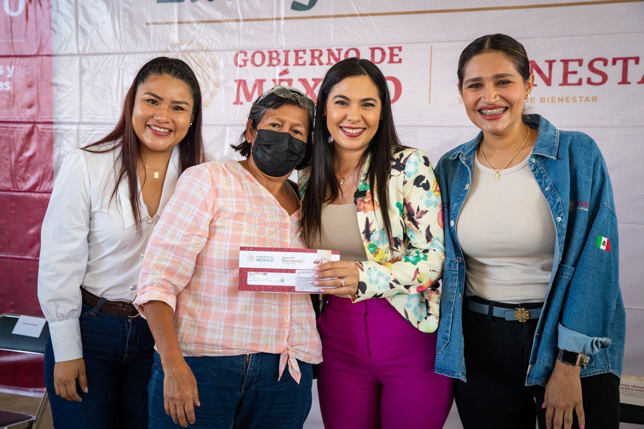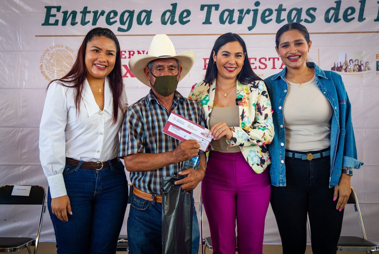 En esta entrega estuvieron también la secretaria de Bienestar, Inclusión Social y Mujeres, Dulce Huerta Araiza; la presidenta municipal, Esther Gutiérrez Andrade; la diputada Myriam Gudiño Espíndola; la directora regional de Programas para el Bienestar, Karely Leticia Vázquez Solórzano y el coordinador del programa Pensión para el Bienestar de las Personas Adultas Mayores, Jonathan Lara Torres.