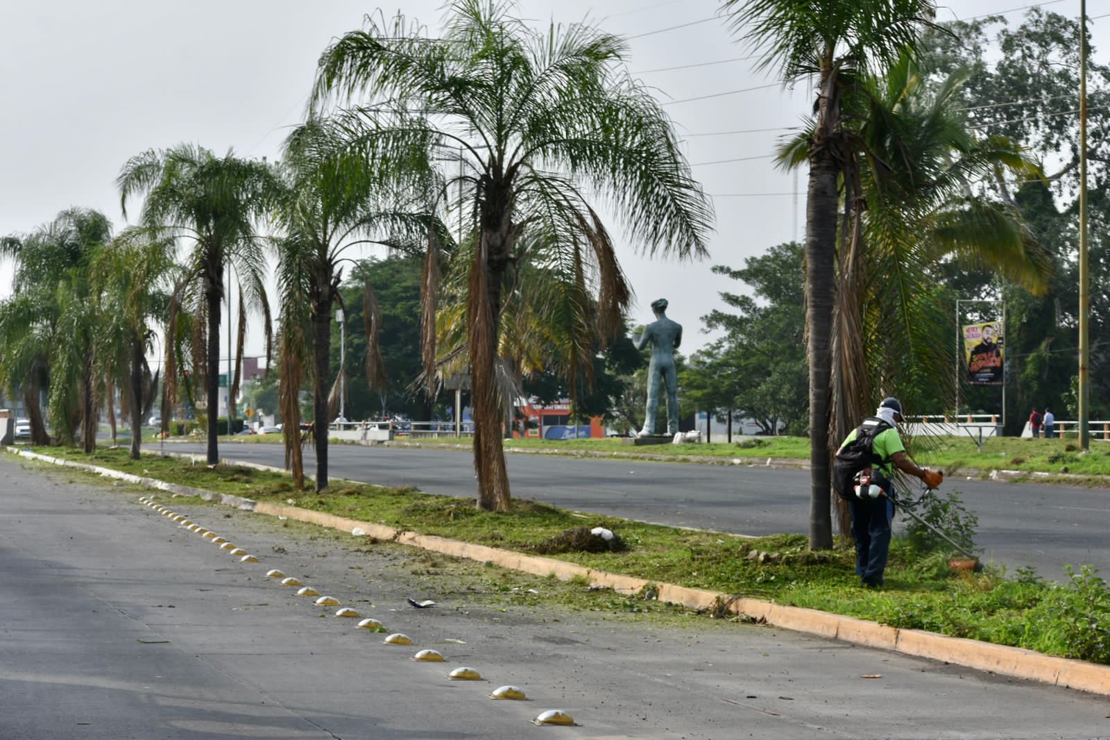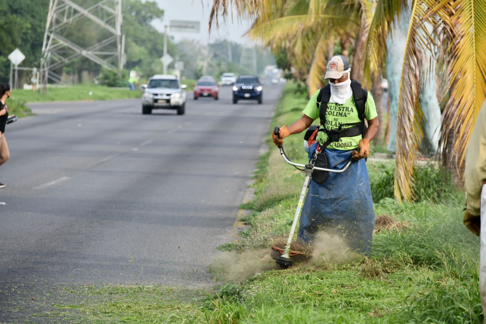 En el camellón central del Paseo Miguel de la Madrid, en los límites de Villa de Álvarez y Colima, frente a Plaza Sendera, la Presidenta Municipal Tey Gutiérrez Andrade dijo que la poda y limpieza de camellones y áreas verdes en general es una prioridad, más en temporada de lluvias cuando la maleza crece muy rápido.