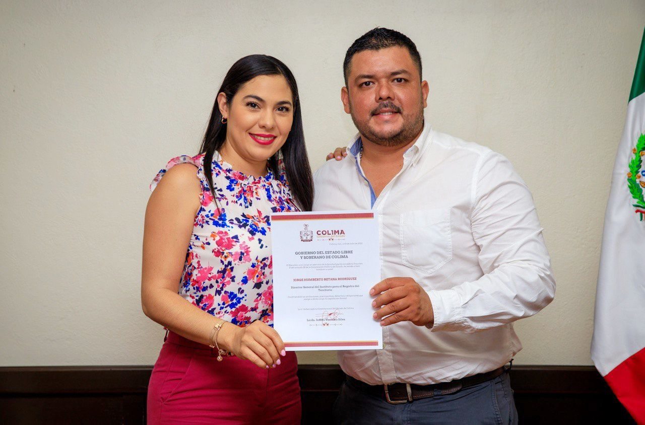 La gobernadora del estado de Colima, Indira Vizcaíno Silva, dio a conocer que hoy entregó el nombramiento a Jorge Humberto Retana Rodríguez, como nuevo director general del Instituto para el Registro del Territorio del Estado de Colima y del Registro Público de la Propiedad y el Comercio.