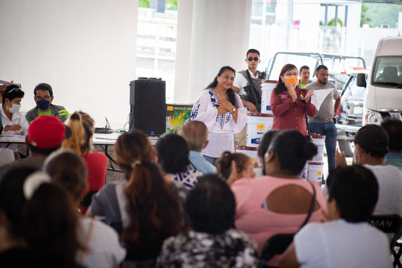 La alcaldesa agradeció a las y los manzanillenses por pagar sus impuestos, desde su predial hasta esas licencias de quien vende sus productos en la vía pública, “gracias a ello podemos ayudar a la gente, pero además nos ha permitido equipar a todas las áreas del Ayuntamiento, para hacer obra pública y prestar mejores servicios”.
