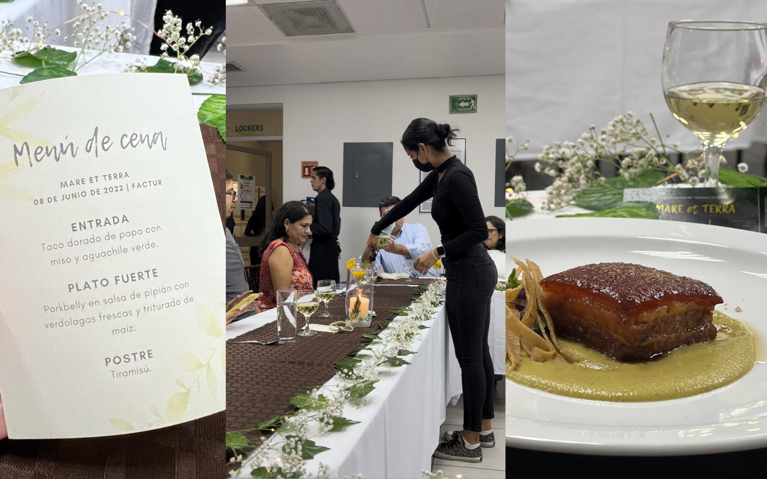 En cuanto a la organización de eventos gastronómicos, prepararon una cata-maridaje que denominaron Mar y tierra, para mostrar sus conocimientos en la materia de gastronomía, que imparten Jesús Solís y Enrique Hernández. Antes, realizaron una investigación y experimentación sobre alimentos, cocteles y vinos viables.