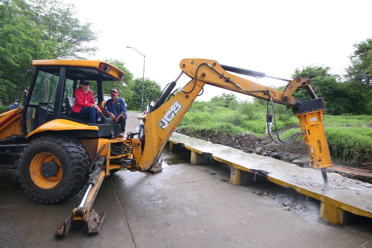 Finalmente, Margarita Moreno supervisó la destrucción de este vado, cuyos trabajos inician formalmente la construcción de esta obra que garantizará el acceso en la colonia y que cumple, así, una demanda exigida por las y los vecinos de Nuevo Milenio IV.