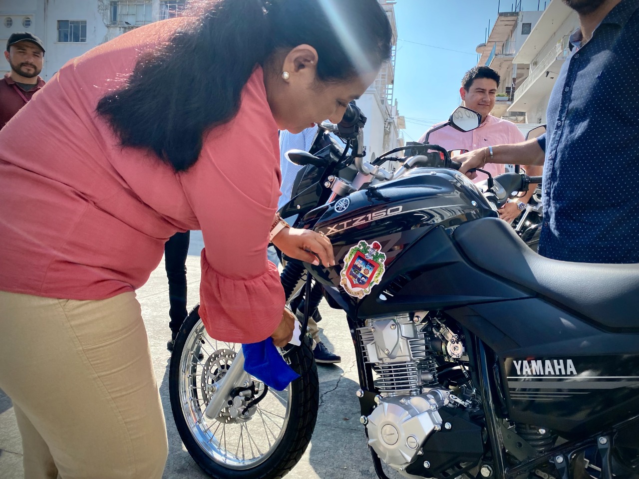 La alcaldesa detalló que 4 de las motocicletas Yamaha de 150 milímetros cúbicos de transmisión manual tuvieron un costo de 64 mil 679 pesos cada una y otra más de la misma marca pero eléctrica y de transmisión automática tuvo un valor de 87 mil 219 pesos, lo cual hace una inversión total de 345 mil 935 pesos, recurso obtenido por el pago de los impuestos de las y los manzanillenses, a quienes felicitó por el cumplimiento de sus obligaciones fiscales.