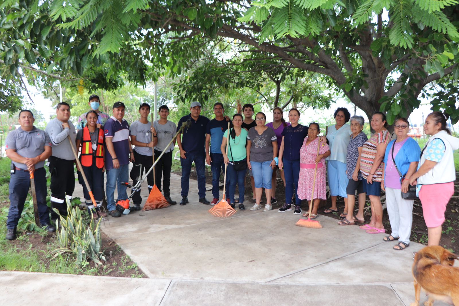 Villa de Álvarez, Colima. A 16 de julio de 2022.- Con la participación de la población preocupada por contar con entornos seguros, la Presidenta Municipal de Villa de Álvarez, Tey Gutiérrez Andrade, en el jardín de la colonia Real de Minas, inició la mega brigada de limpieza, que simultáneamente se realizó en 42 espacios públicos.
