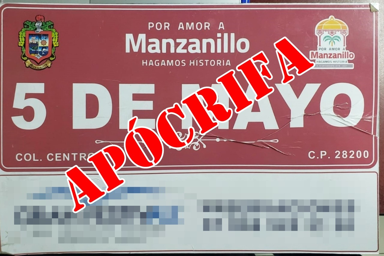 El Ayuntamiento de Manzanillo ha detectado que en diversos puntos de la ciudad se están comercializando de manera fraudulenta, placas de nomenclaturas de distintas calles, muy parecidas a las que la entidad municipal ha colocado, por lo que se pide a la población en general no dejarse sorprender, toda vez que es un delito utilizar la imagen oficial o los sellos propios de la administración municipal.