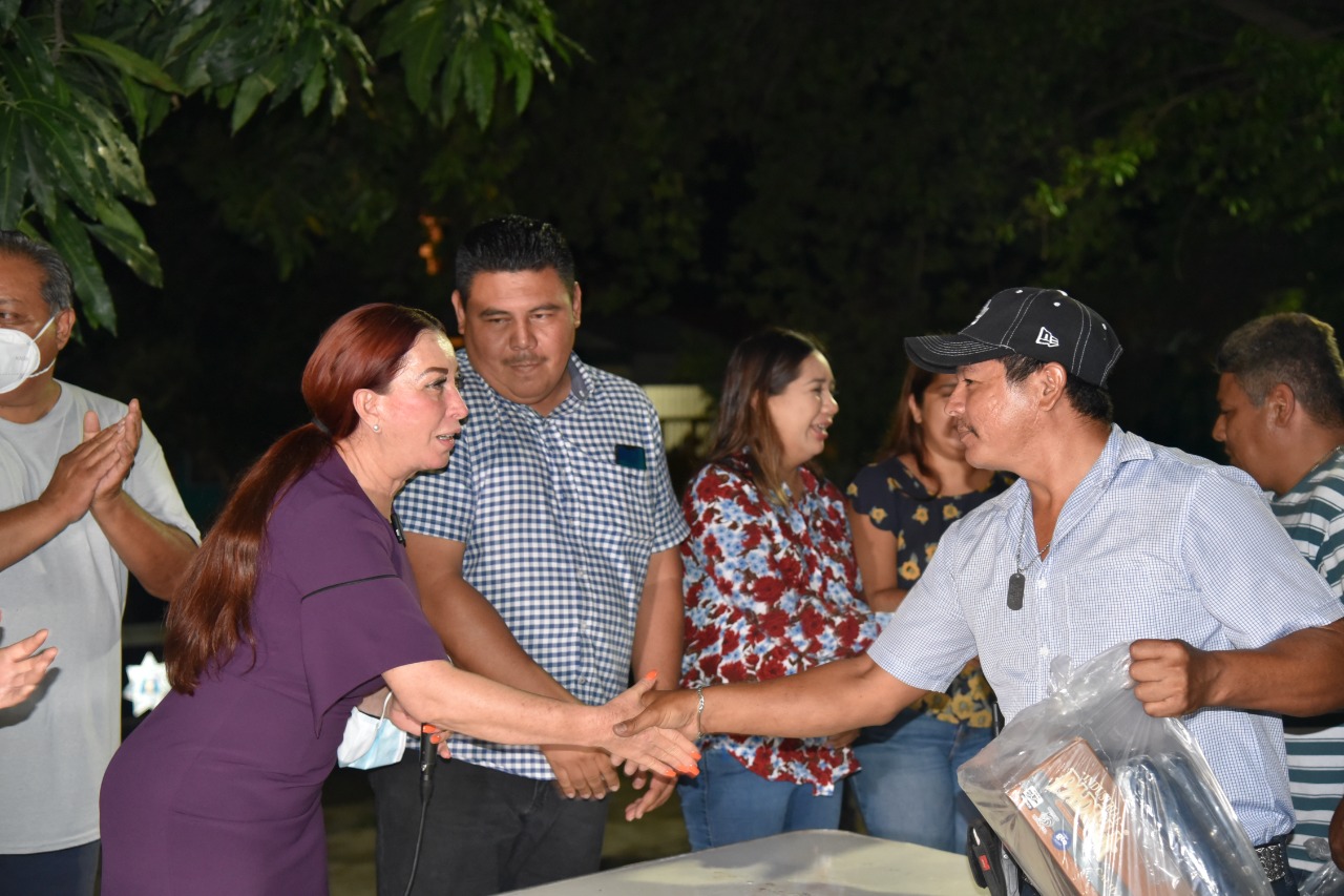 Así mismo en este evento, la Alcaldesa hizo entrega de uniformes a trabajadores del área de Alumbrado Público municipal, así como también una máquina soldadora con la cual podrán soldar los registros y las tapaderas para evitar el robo de cable, por ello los trabajadores agradecieron la respuesta de la Presidenta para equiparlos con lo primordial para realizar un mejor trabajo en beneficio de la ciudadanía.