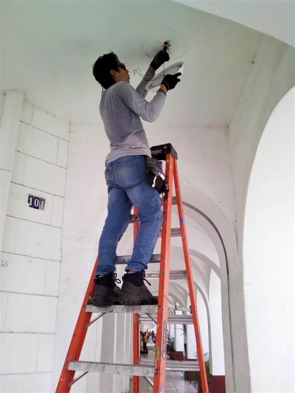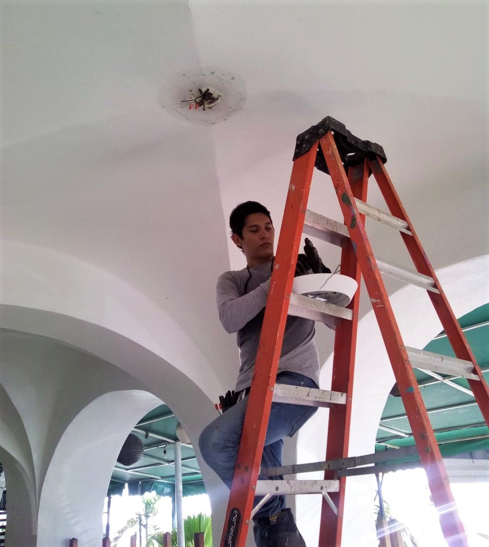 Como parte de las tareas permanentes de mejoramiento del Centro Histórico de Manzanillo, la brigada de embellecimiento Urbano del Ayuntamiento porteño, a cargo de la Dirección de Participación Ciudadana y Desarrollo Comunitario, lleva a cabo la sustitución de focos fundidos de los portales.