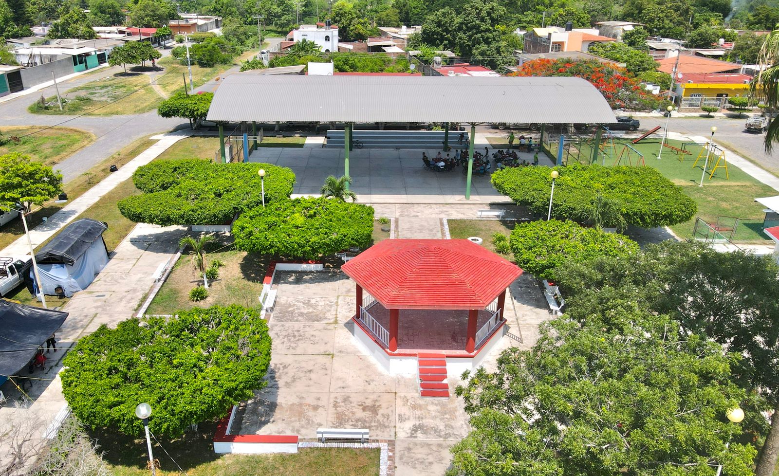 En conjunto, las direcciones mencionadas realizaron sus acciones correspondientes a cada una, las cuales fueron, poda de arboles y pasto, recolección de escombros y ramas, mantenimiento de luminarias, colocación de 4 luminarias, pintura de espacios públicos, así como bacheo de calles.