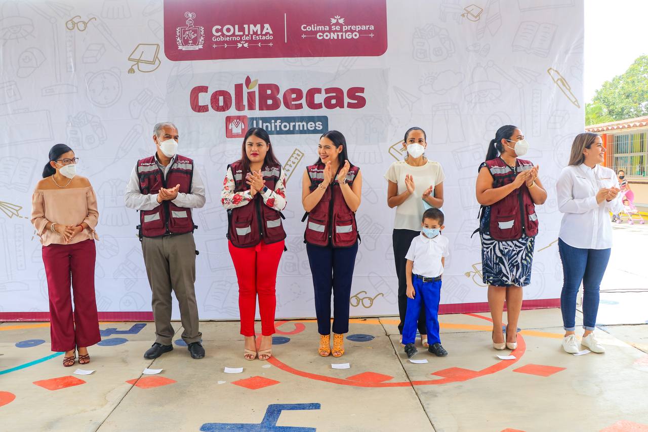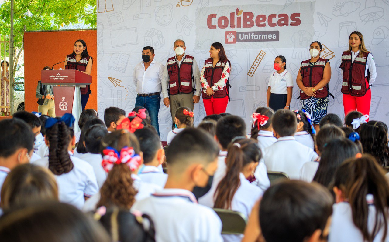 La gobernadora de Colima, Indira Vizcaíno Silva, informó que su administración invierte más de 300 millones de pesos con el programa Programa ColiBecas, a través de: uniformes, mochilas, útiles escolares y computadoras, para apoyar la educación de niñas y niños de preescolar y primaria, y estudiantes de secundaria, para contribuir a recuperar nuestro estado y entregar dentro de unos años un mucho mejor estado que el que recibió; esto al entregar uniformes escolares gratuitos en el kínder ‘Ma. Guadalupe Delgado Magaña’ y en la primaria ‘Valentín Gómez Farías’ de Coquimatlán.