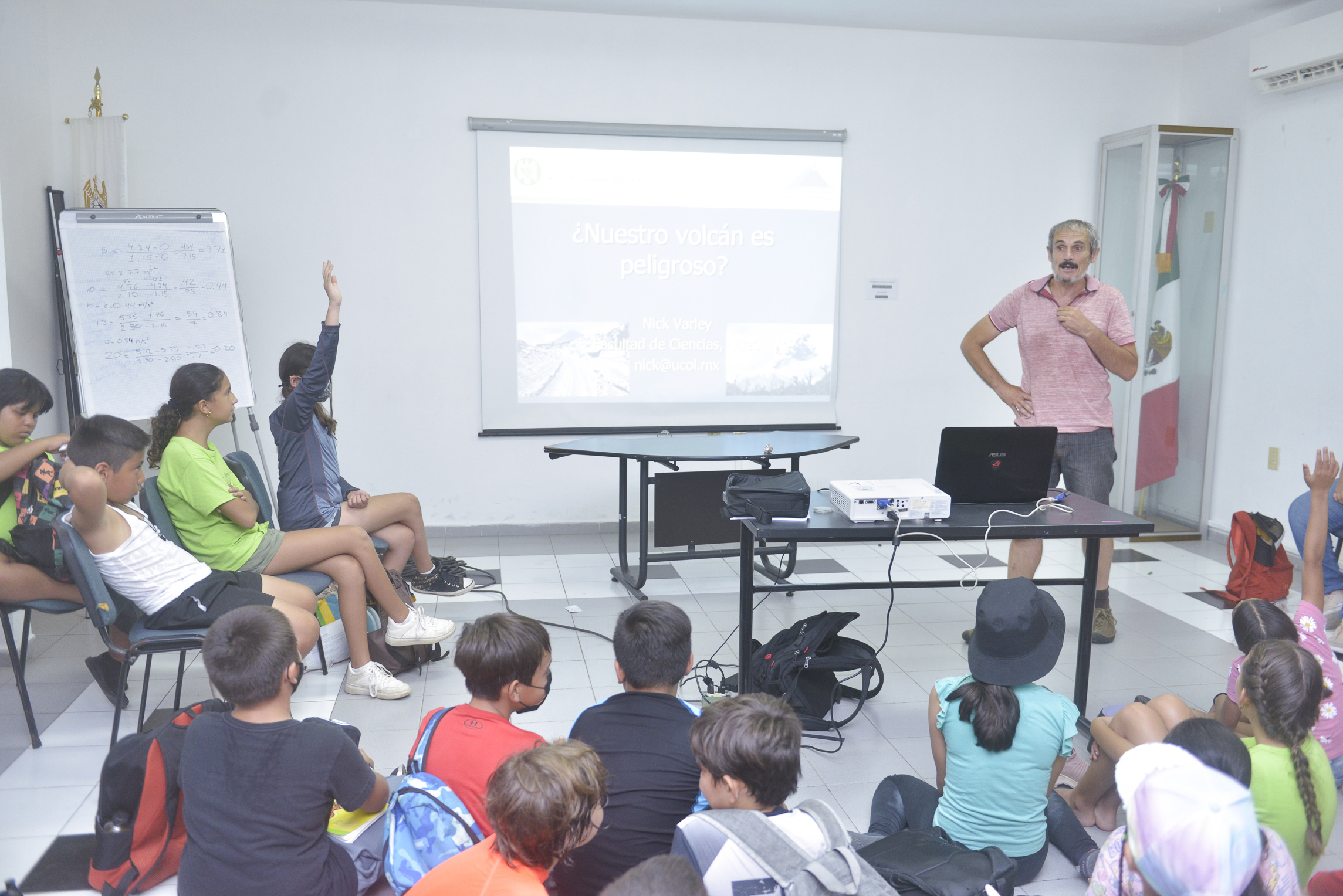 Como parte de las actividades del curso de verano de la Universidad de Colima “Loromanía: una aventura de verano”, el Dr. Nick Varley impartió la charla “¿Nuestro volcán es peligroso?”, a las niñas y niños asistentes, en la que explicó qué es un volcán, cómo es una erupción y cuáles son las partes de un volcán.