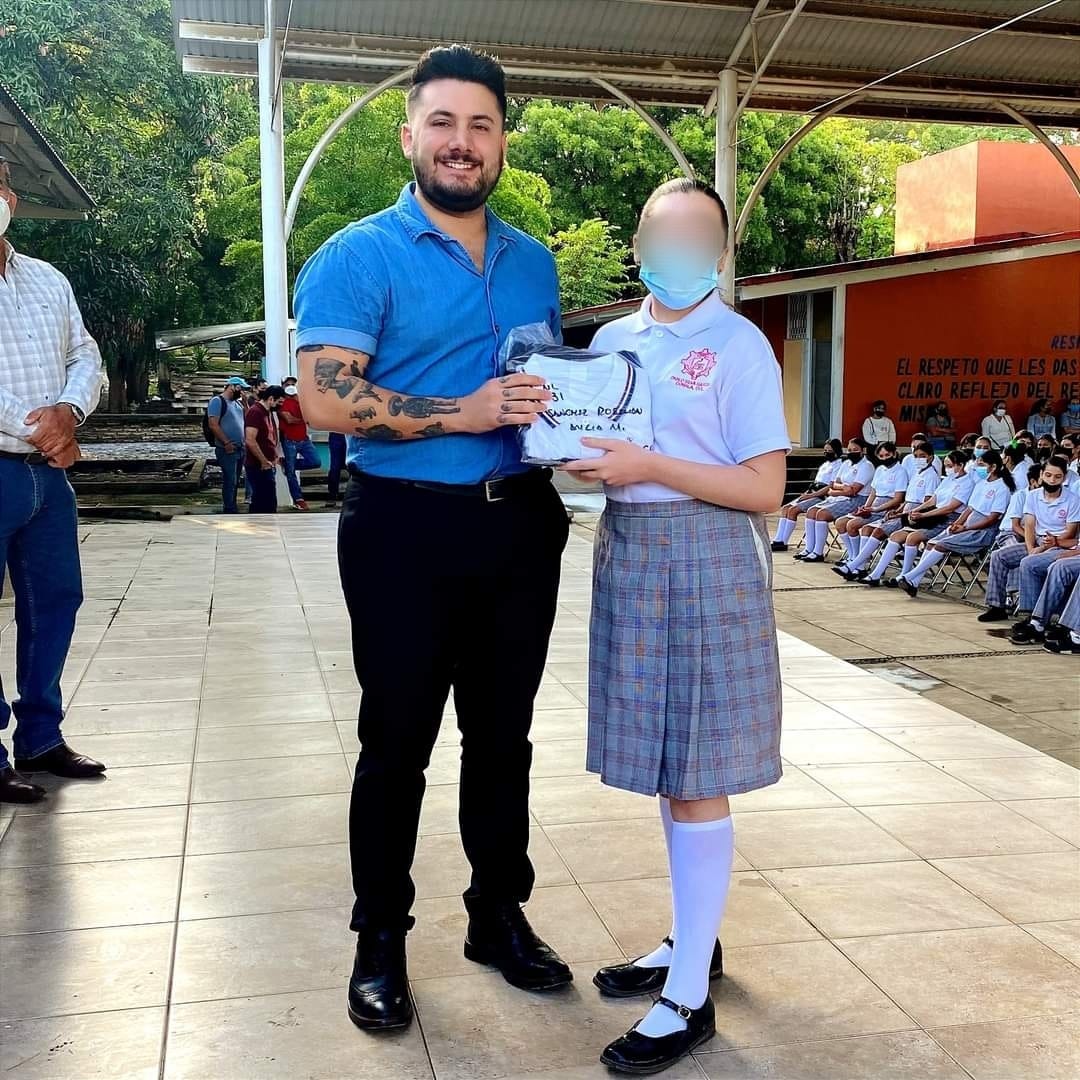 En la entrega de la secundaria “Pablo Silva García”, estuvieron Alma Delia Delgado, representante de la Secretaría de Bienestar, Inclusión Social y Mujeres; Héctor Manuel Torres González, jefe del Departamento de Telesecundarias de la Secretaría de Educación y Cultura, y María Elizabeth García Fierros, directora del plantel, así como la alumna Ana Isabella Fuentes, quien agradeció a la gobernadora Indira Vizcaíno esta ayuda que están recibiendo para que las y los estudiantes puedan regresar a clases con uniformes nuevos.