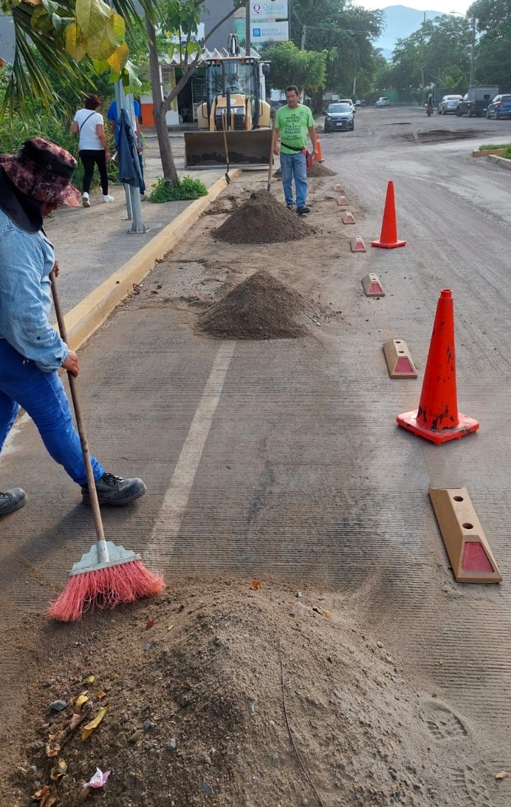 A consecuencia de las constantes precipitaciones que caen sobre el municipio, el Ayuntamiento de Manzanillo a través de la Dirección de Mantenimiento y Conservación cada día atiende desazolve de calles en las que se acumulan sedimentos tras escurrimientos causados por las fuertes lluvias, y que son un  riesgo para transeúntes y automovilistas.